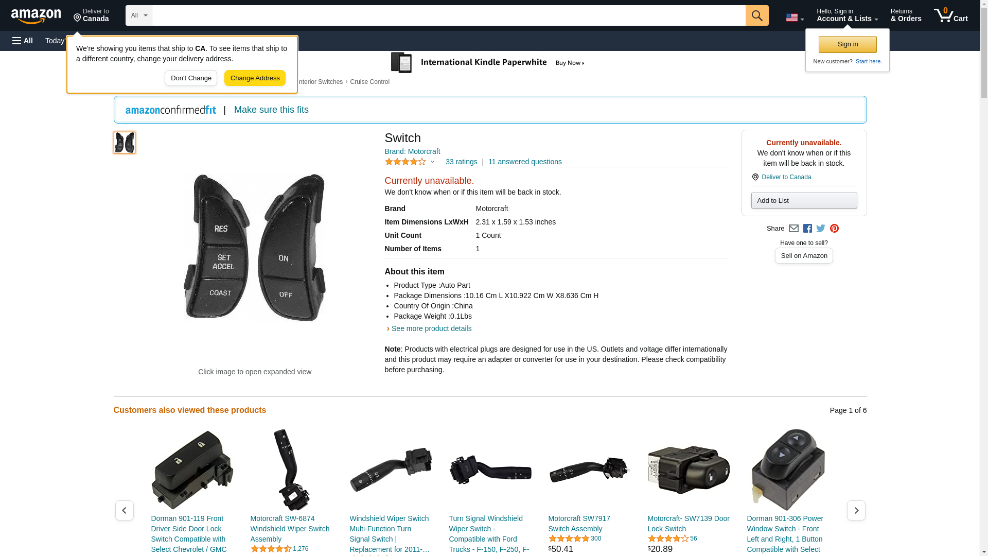 Motorcraft SW5924 Cruise Control Switch