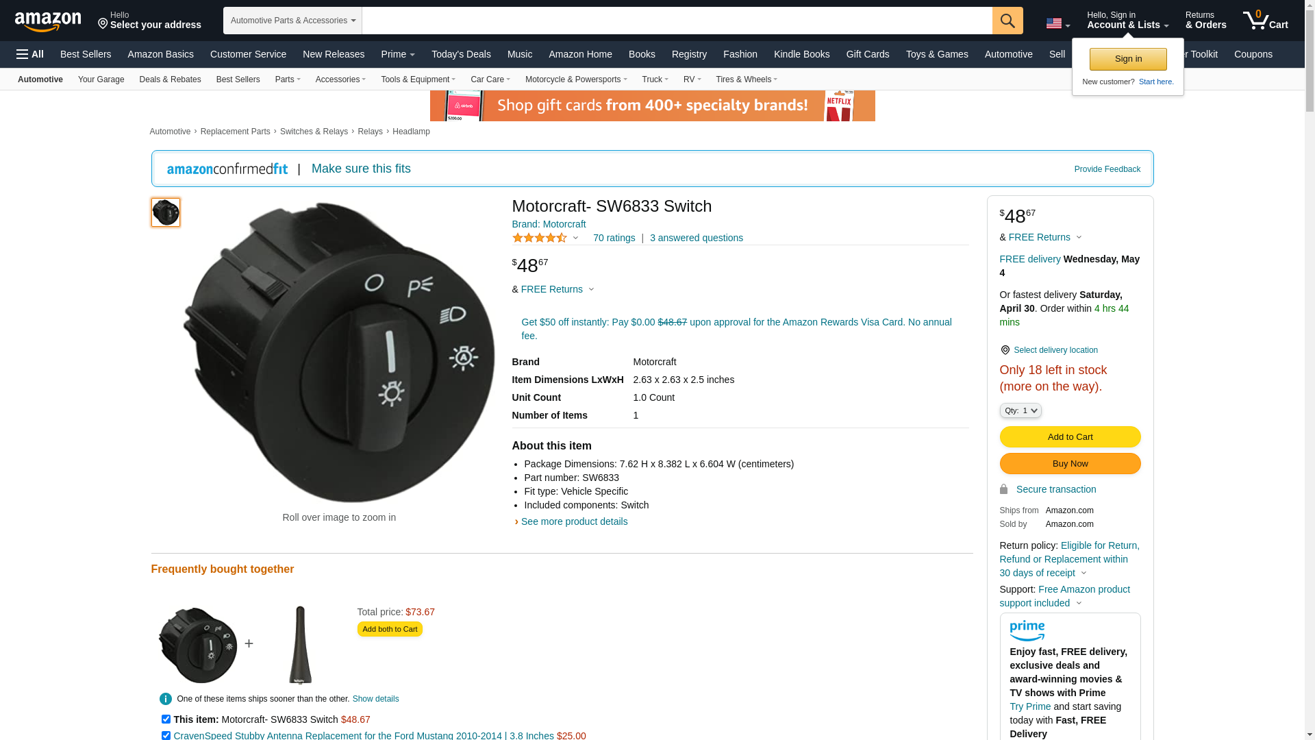| StockWise Auto | MTC-SW6833 | 1 | 31 | 1 | 1 @ $19.37 |