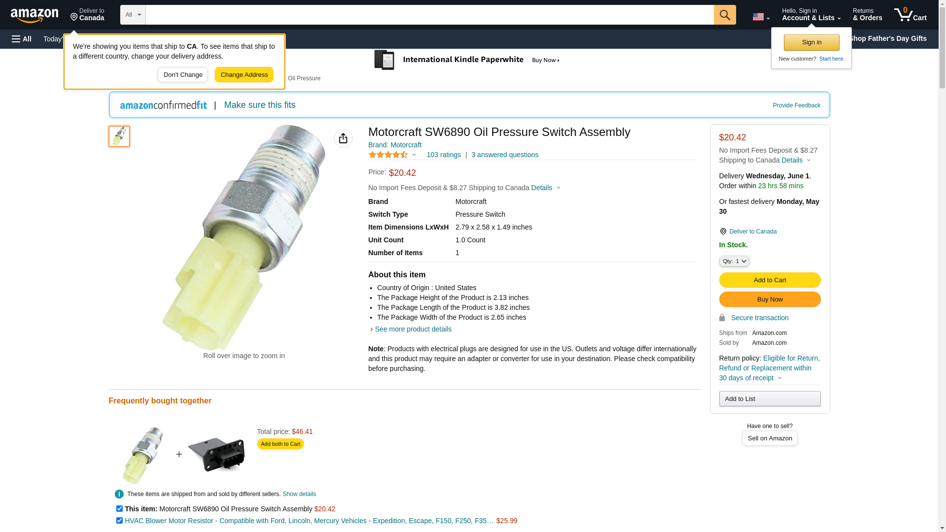 Motorcraft SW6890 Oil Pressure Switch Assembly