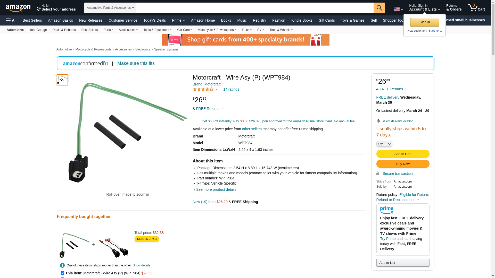Motorcraft WPT984 Electrical Pigtail