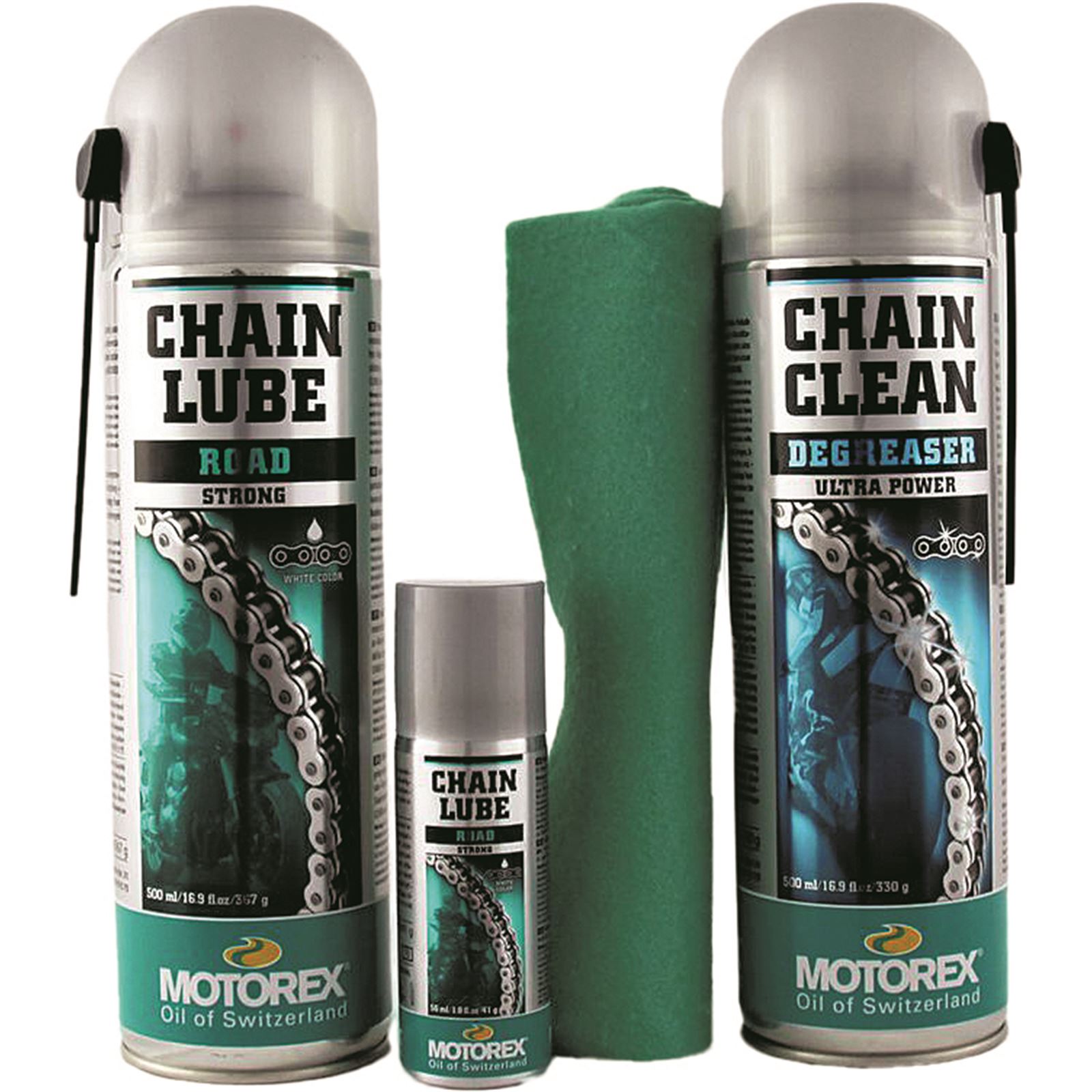 | Feature | Includes 622 Strong street bike chain lube in both the large 500ml and the easy-to-carry, refillable small 56ml spray and the 611 Chain Clean along with a large green cotton cloth to help dry the |