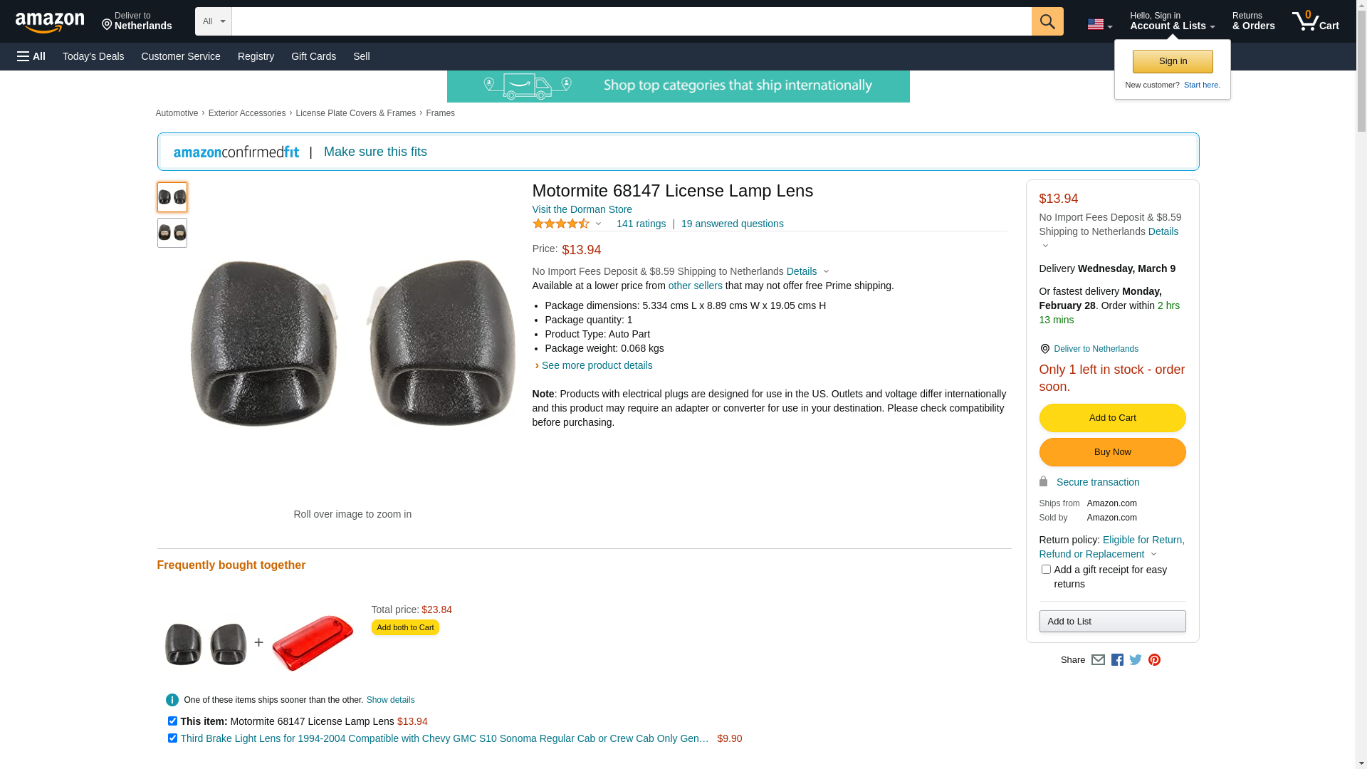 Motormite 68147 LICENSE PLATE LIGHT LENS