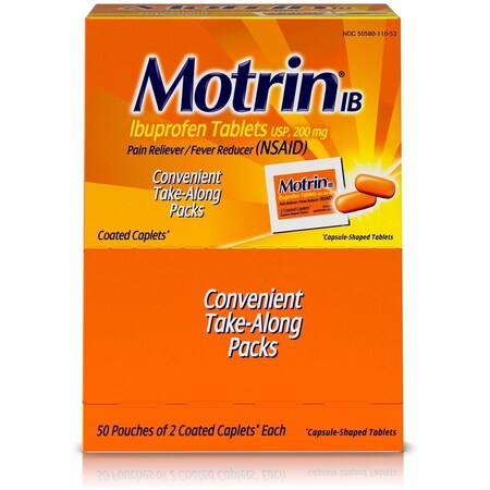 Motrin IB 48152 Ibuprofen Tablets, Two-Pack, 50 Packs/Box