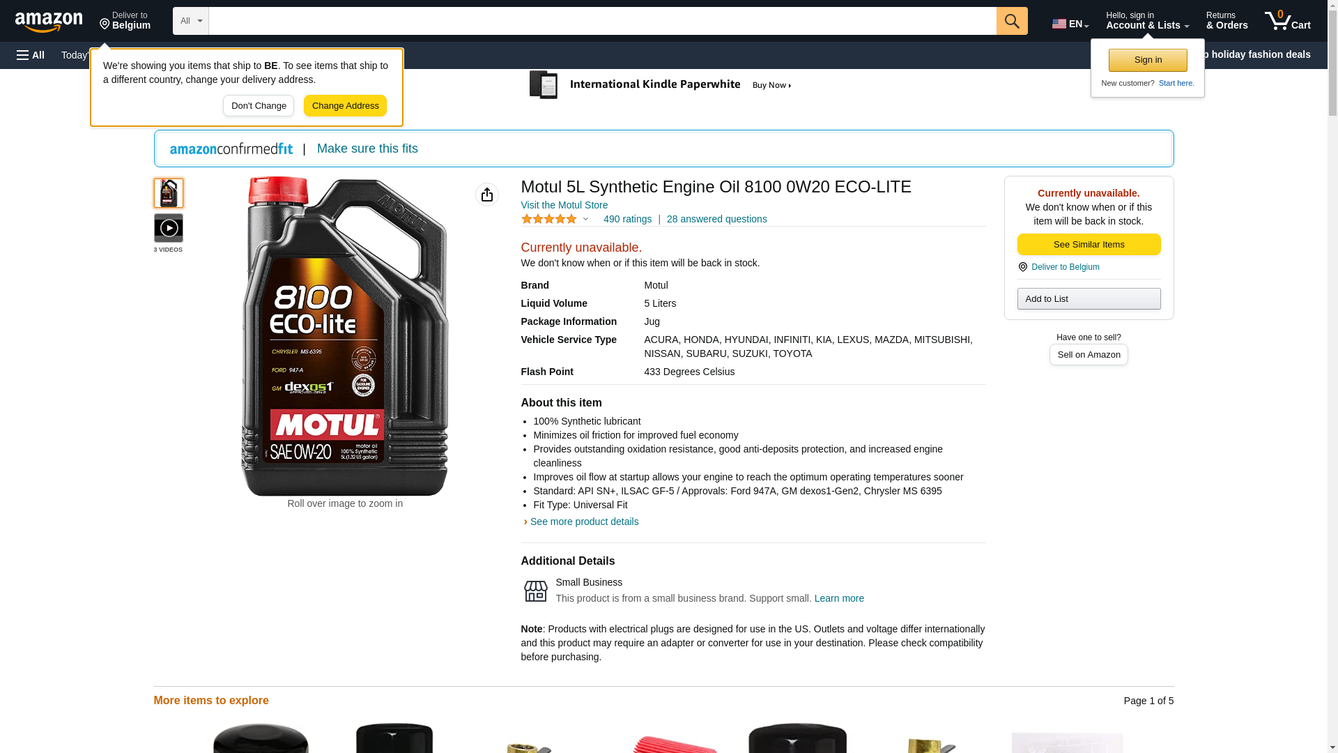 Motul 5L Synthetic Engine Oil 8100 0W20 ECO-LITE