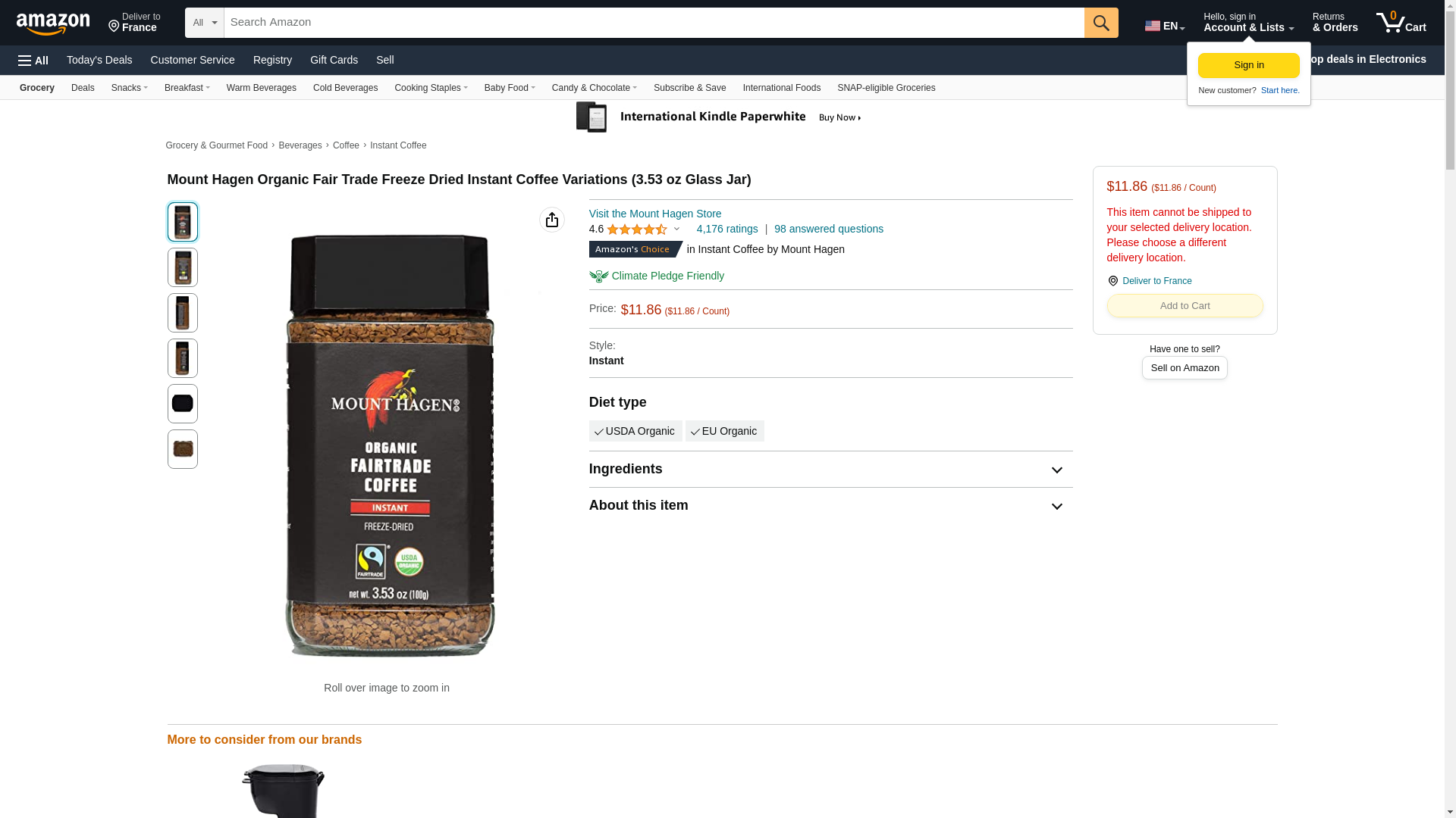 | Feature | Mount Hagen Organic Instant Coffee - 3.53 Oz. |