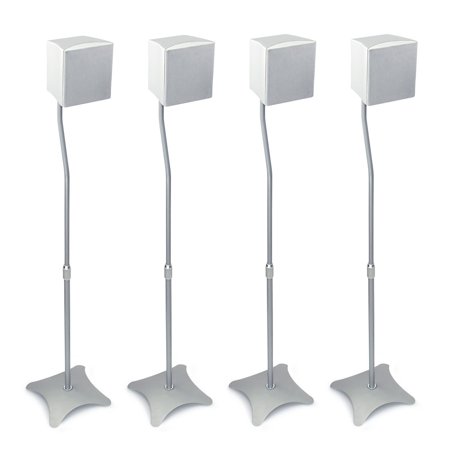 - UNIVERSAL SPEAKER FLOOR MOUNTS - Premium and universal speaker stands (4 Stands) for home theater system satellite speakers. Ideal for front pair and rear pair positions for a 5-speaker setup.
