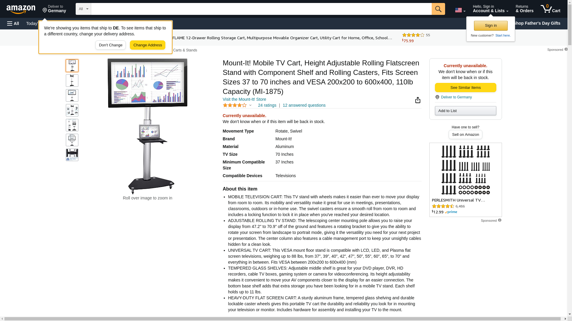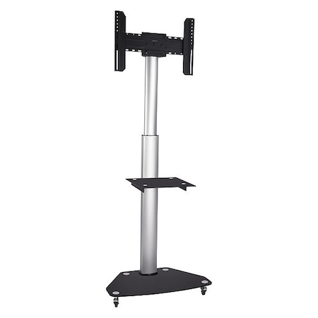 The <b>Mount-It! MI-1875 Rolling TV Stand with Component Shelving</b> is a universal mobile TV cart that fits VESA-compatible TVs from 37” to 70”. The aluminum frame is built with a telescoping column that allows you to adjust the height of your flat screen for the perfect viewing the level. The VESA TV bracket works with 200x200 to 600x400mm VESA configurations, supports up to 88 lbs, and can be rotated from landscape to portrait for presentation versatility.<p> The tempered, safety glass shelving carry up to 11 lbs each, and the shelf is also height adjustable. Cable management and locking, castor wheels are great additional features that make the MI-1875 a great option if you need a TV cart for the classroom, office, conference room, for presentations, trade shows, or even at home.<p> <b>SPECIFICATIONS:</b><p> STAND HEIGHT: 47.2" to 70.9"<br> VESA COMPATIBILITY: 200x200, 300x300, 400x200, 400x400, 600x400 (mm)<br> ROTATE: +/- 90 degrees<br> TV BRACKET CAPACITY: 88 lbs<br> SHELF CAPACITY: 11 lbs<br> SHELF DIMENSIONS: 16.5” W x 13.8” D<br> BOTTOM SHELF CAPACITY: 11 lbs<br> BOTTOM SHELF DIMENSIONS: 31.5” W x 19.7” D<br>