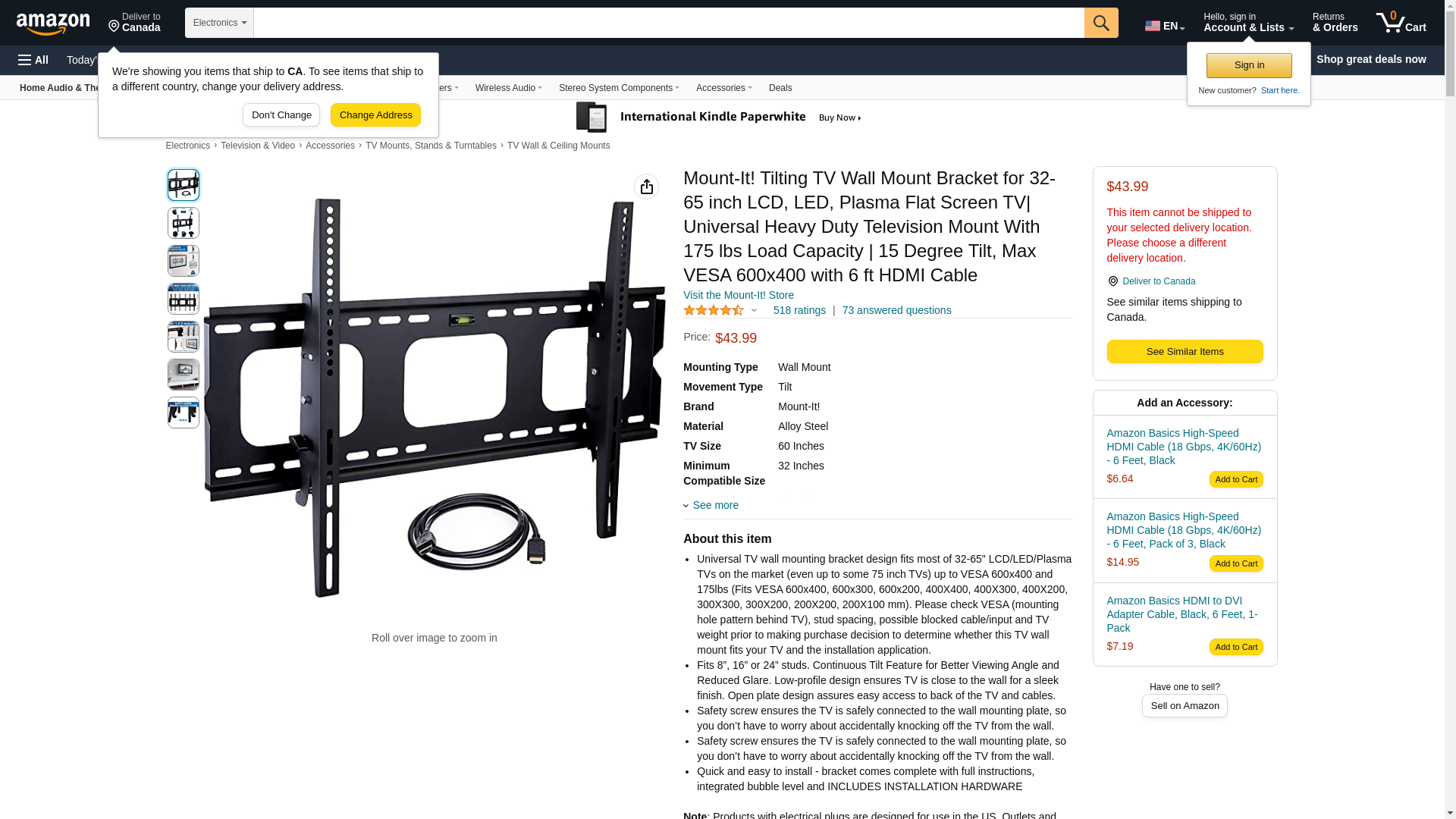 Mount-It! MI-303B TV Wall Mount Bracket for 32-65 inch LCD, LED, Plasma Flat Screen TV, Heavy Duty Load Capacity 175 lbs, 15 Degree Tilt Up or Down, Max VESA 600x400 with 6 ft HDMI Cable: Maxedbuy.com