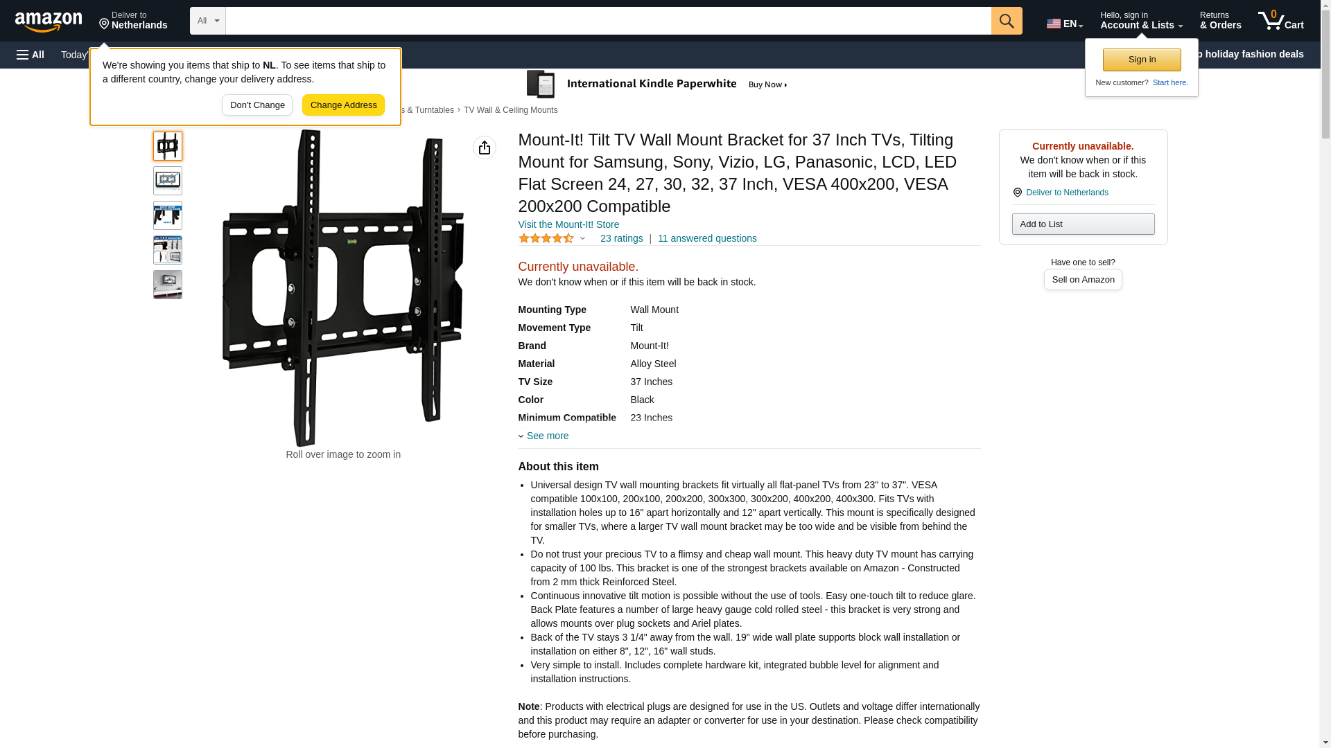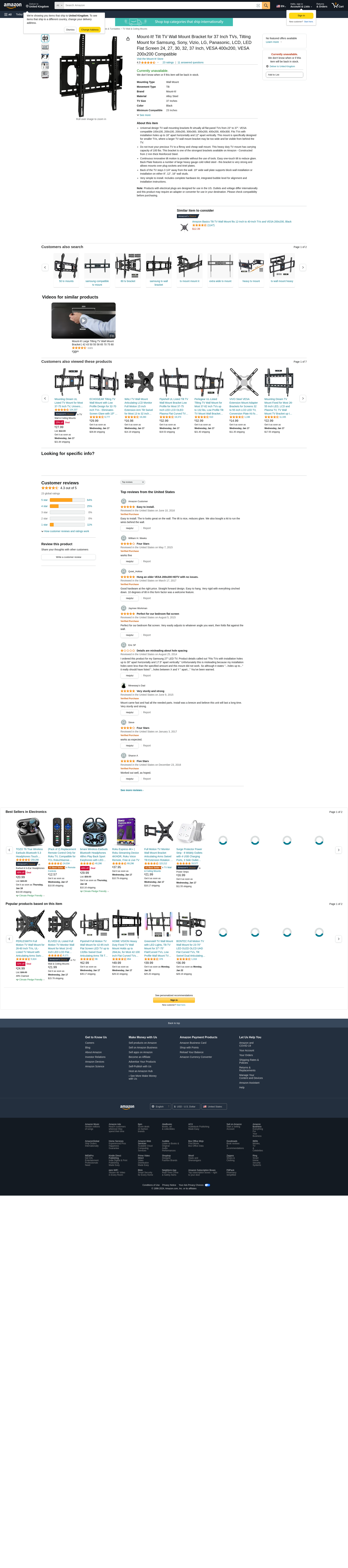 | Feature | Universal design TV wall mounting brackets fit virtually all flat-panel TVs from 23" to 37". VESA compatible 100x100, 200x100, 200x200, 300x300, 300x200, 400x200, 400x300. Fits TVs with installation holes up to 16" apart horizontally and 12" apart vertically. This mount is specifically designed for smaller TVs, where a larger TV wall mount bracket may be too wide and be visible from behind the TV. |