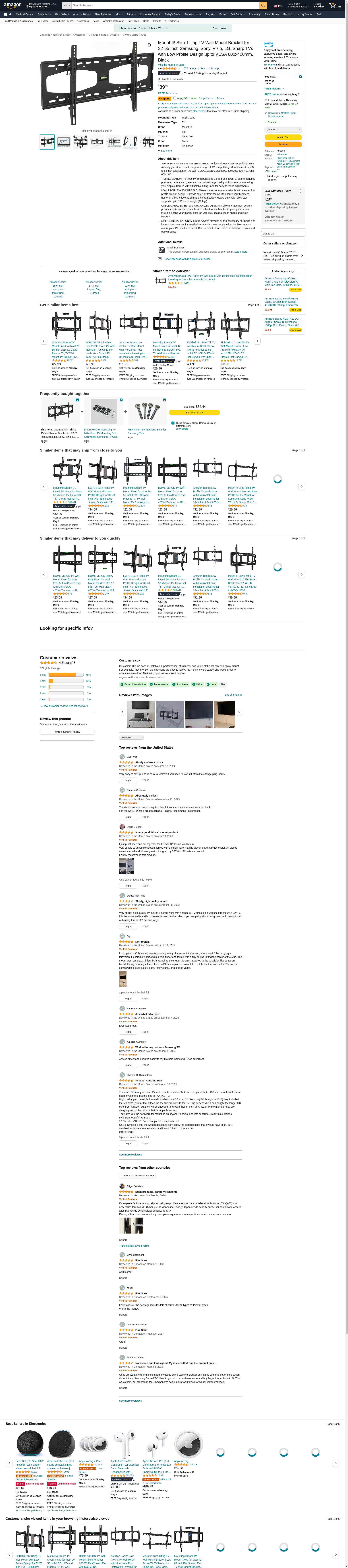 - QUICK & EASY INSTALLATION - The included mounting kit comes complete with simple instructions, integrated bubble level and hardware. Mount-It! TV mounts work with all major TV brands including Samsung, Sony, TCL, Vizio, Hisense & more