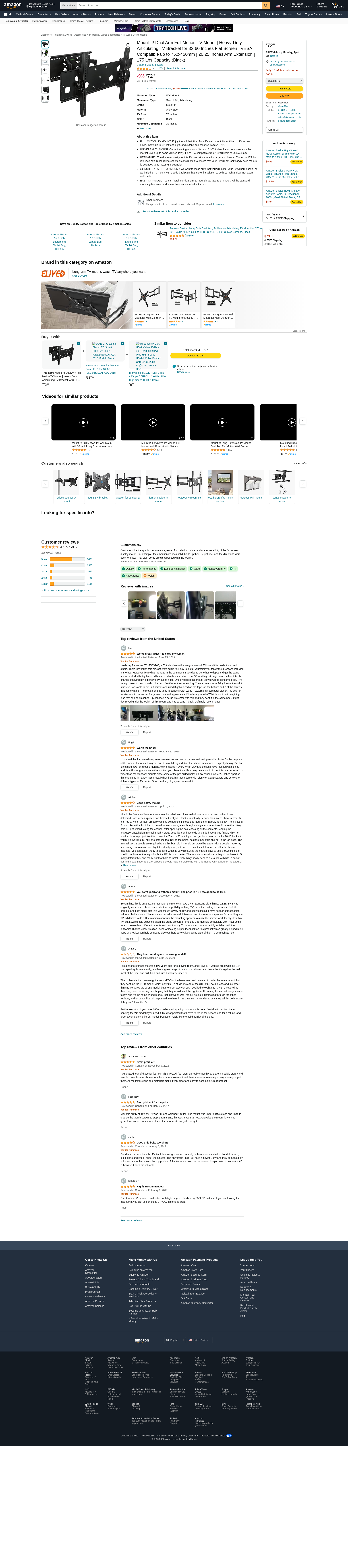 - HEAVY-DUTY: The dual-arm design of this TV bracket is made for larger and heavier TVs up to 175 lbs. We used cold-rolled reinforced steel construction to ensure that your TV will not look saggy even the arm is extended to its maximum extension.