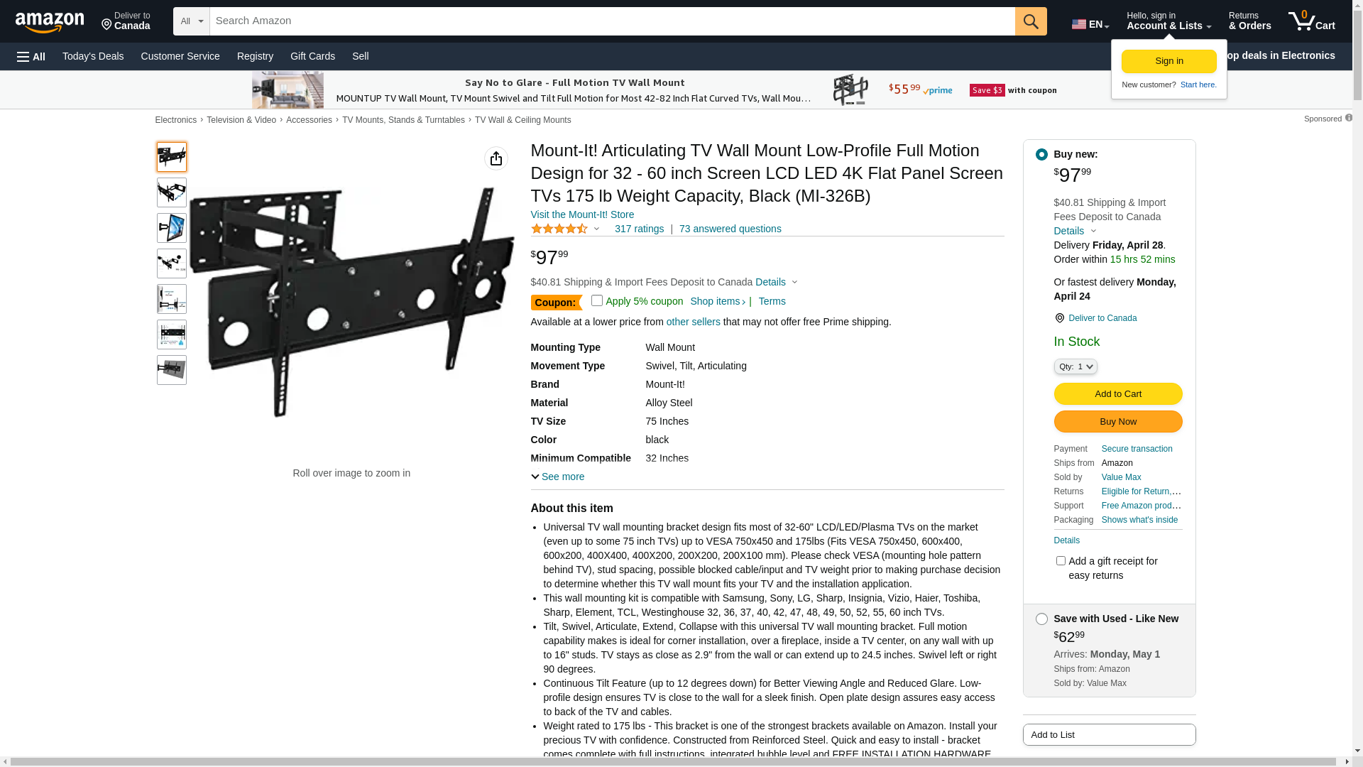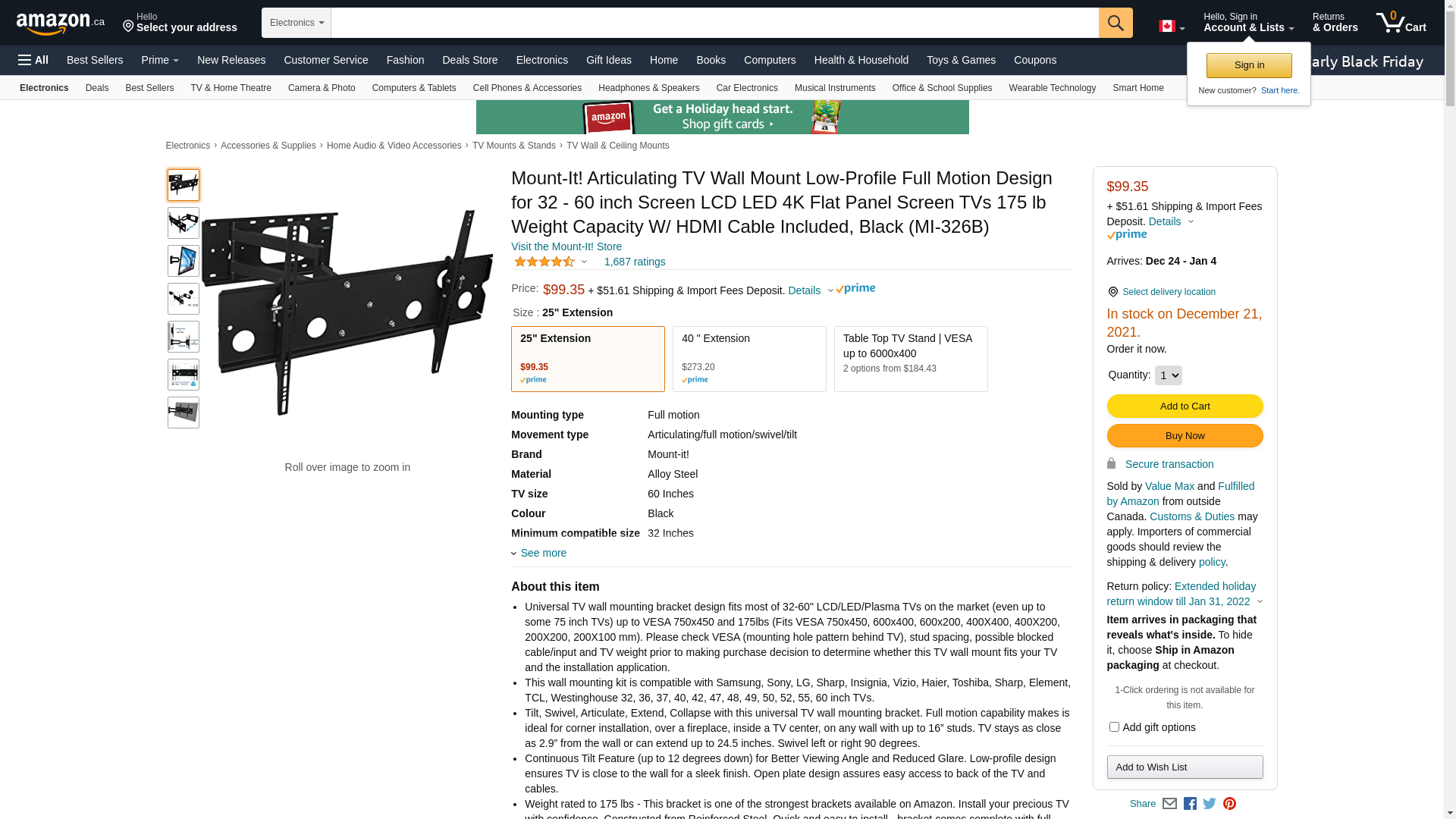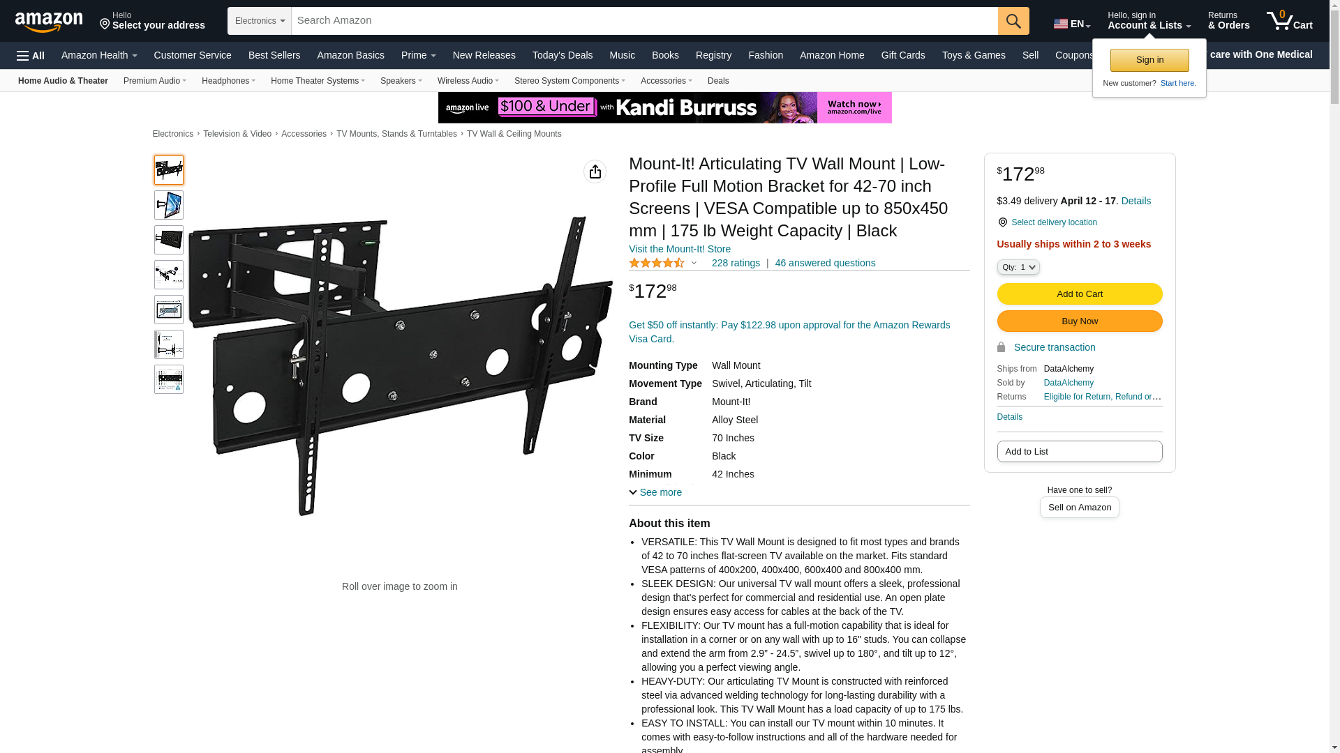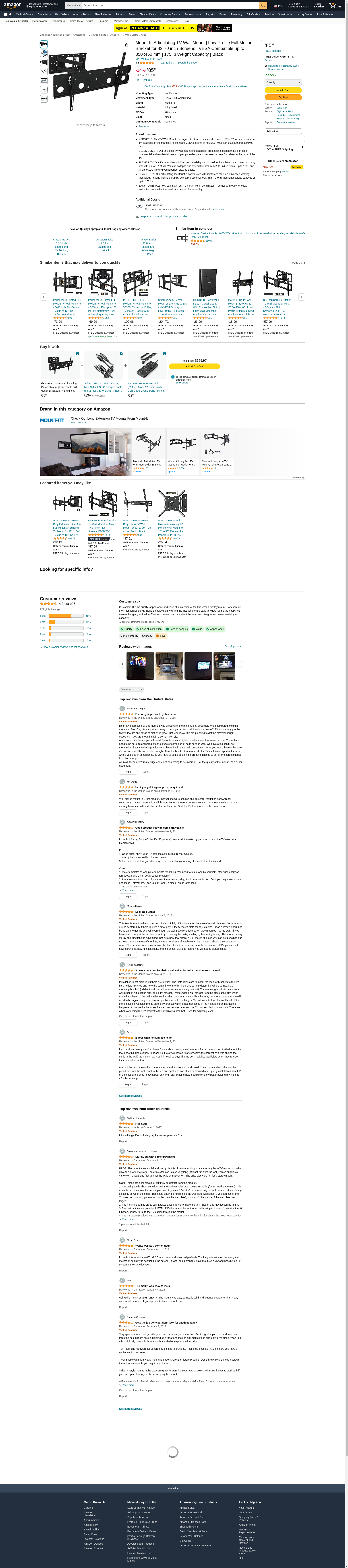 - HEAVY-DUTY: Our articulating TV Mount is constructed with reinforced steel via advanced welding technology for long-lasting durability with a professional look. This TV Wall Mount has a load capacity of up to 175 lbs.