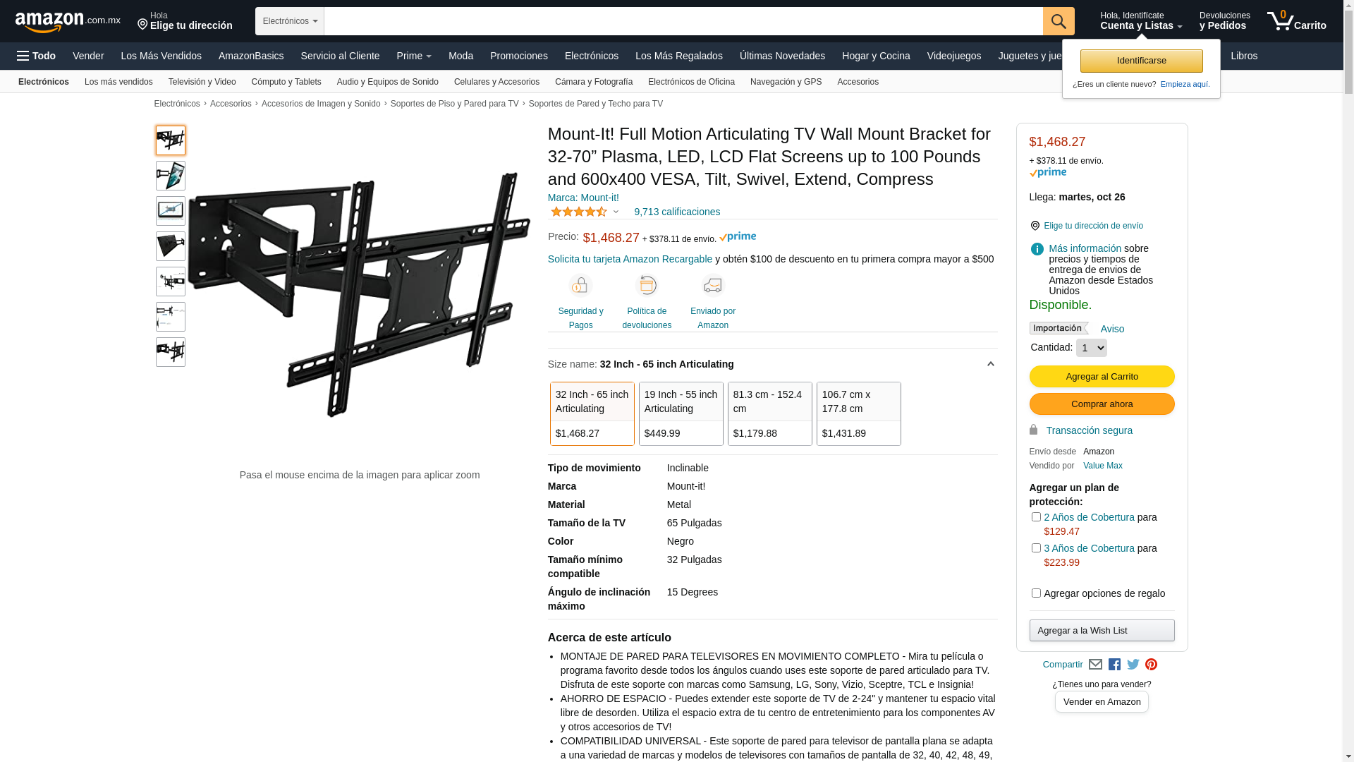 Mount-It! Ultra Slim full motion articulating TV wall mount offers extreme versatility with a maximum extension of 23.7" from the wall. It is suitable for LCD, Plasma or LED TVs, in sizes ranging from 32" to 65". Its swivel arm design is incredibly sturdy, and supports a wide range of plasma and LCD flat screen televisions. Mount swivels from left to right for viewing from multiple angles. Continuous tilt motion is possible without the use of tools. Powder coated steel construction provides a sleek, high-tech look. Built in lateral shift. Integrated bubble level included for convenience. Universal mounting brackets fit nearly all flat-panel TVs. Ideal for corner installations. Includes complete hardware kit and installation instructions. <br> <br> <b>Features</b> <br> <br> Fits most of 32-65" TVs <br> Collapses to 2.2" low profile, Extends 23.7" from the wall. <br> Tilt, Swivel and Extend/Collapse function <br> Easy tilting angle adjustment <br> Heavy duty steel construction and high-tech welding technology <br> Free integrated bubble level makes leveling work easy and convenient <br> Includes all necessary mounting hardware <br> <br> <b> Specifications:</b> <br> * TV Size Range: 32" - 65" (some even up to 75" depending on VESA bolting pattern and the TV weight) <br> * Max TV weight: 100 lbs <br> *Mounting Pattern: Universal and up to VESA 600 x 400. Fits VESA 600x400, 600x300, 600x200, 400X400, 400X300, 400X200, 300X300, 300X200, 200X200, 200X100, 200X150, 100X100, 75X75mm <br> * Mounting Holes: up to 24.5" apart horizontally and up to 16" vertically <br> * Wall plate dimensions: 19" wide by 8.75" high. <br> * Tilt: up to 12 degrees down or 2 degrees up and any angle in between. Swivel: 90 degrees to left or to right <br> * Extension from the wall: between 2.2" to 23.7"