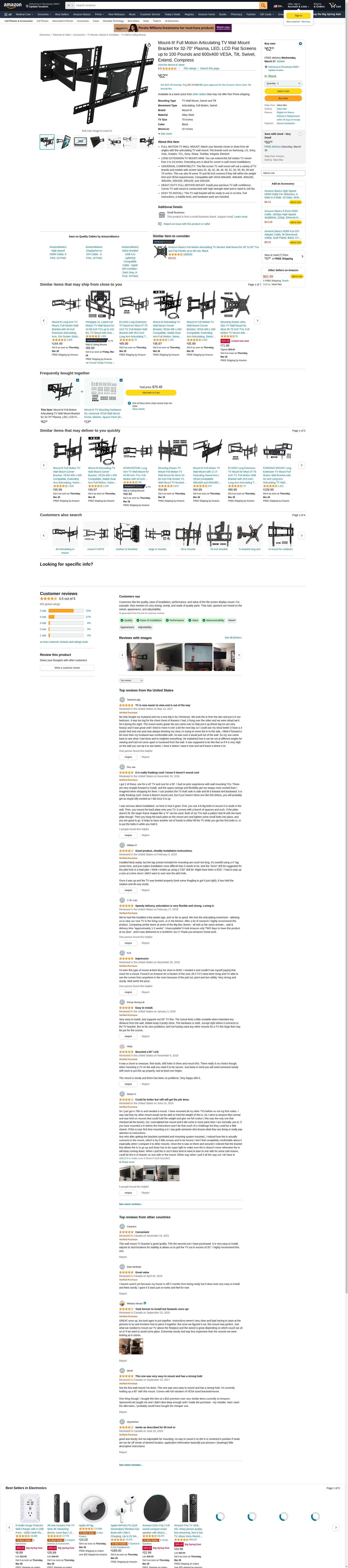 - FULL MOTION TV WALL MOUNT: Watch your favorite movie or show from all angles with this articulating TV wall mount. Fits brands such as Samsung, LG, Sony, Vizio, Sceptre, TCL, Sony, Sharp, Toshiba, Insignia, Element