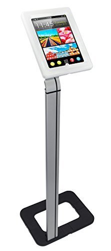 - Elegant Modern Design - A Polished Finish White Tablet Enclosure With Silver Tablet Floor Stand Allows You To Really Drive Engagement and Look Professional
