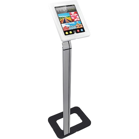 Mount-It! Anti-Theft Tablet Floor Stand for iPad MI-3780 Built to be displayed, this tablet floor stand is elegant, easy to use, and secure. Use as a check-in kiosk at trade shows, church, clinics, lobbies, or offices. Easily adjust the display angle and screen orientation to showcase any app. The locking enclosure ensures your tablet is safe when and protects it from tampering or theft. For a clean and organized appearance, feed all cords through the cable management access port within the pole to hide from view and keep your tablet fully charged. Fits iPad 2, 3, 4, 5, 6, iPad Air, iPad Pro 9.7, and some Android tablets Tablet Holder Dimensions: 8.75” x 11.25” Rotation: 90° Height: 45" Materials: Aluminum, Steel, Plastic