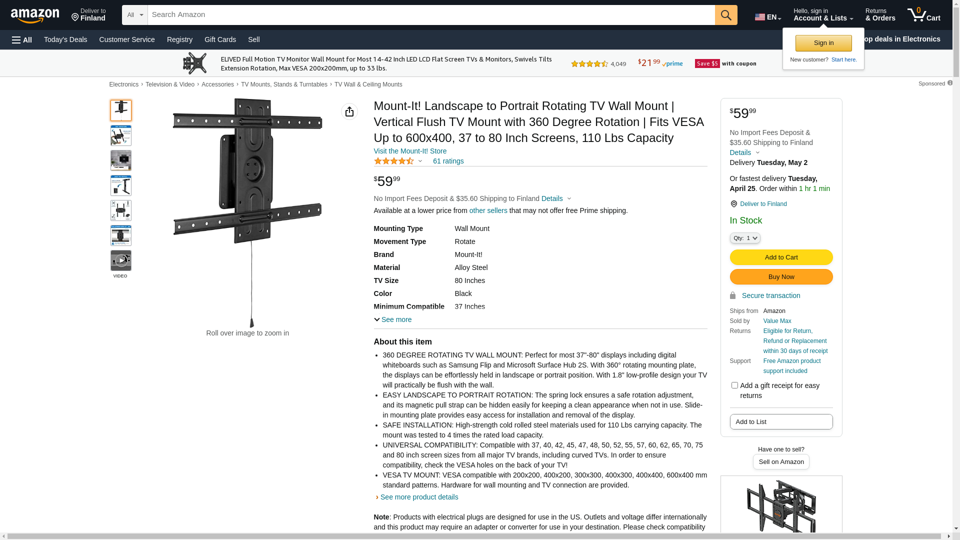 | Product type | FLAT_SCREEN_DISPLAY_MOUNT |