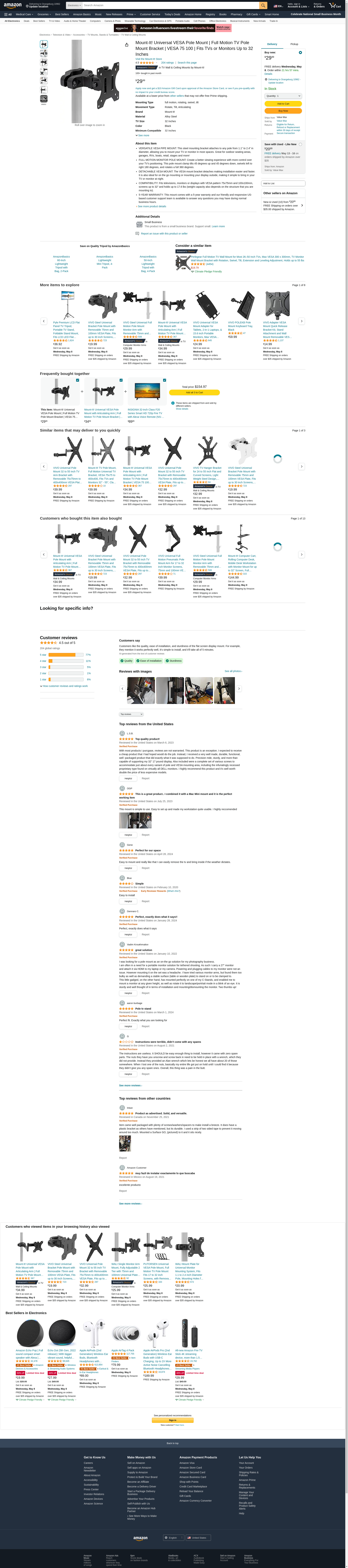 - 5-YEAR WARRANTY: This mount comes with a 5-year warranty and our friendly and responsive US-based customer support team is available to answer any questions you may have during normal business hours.