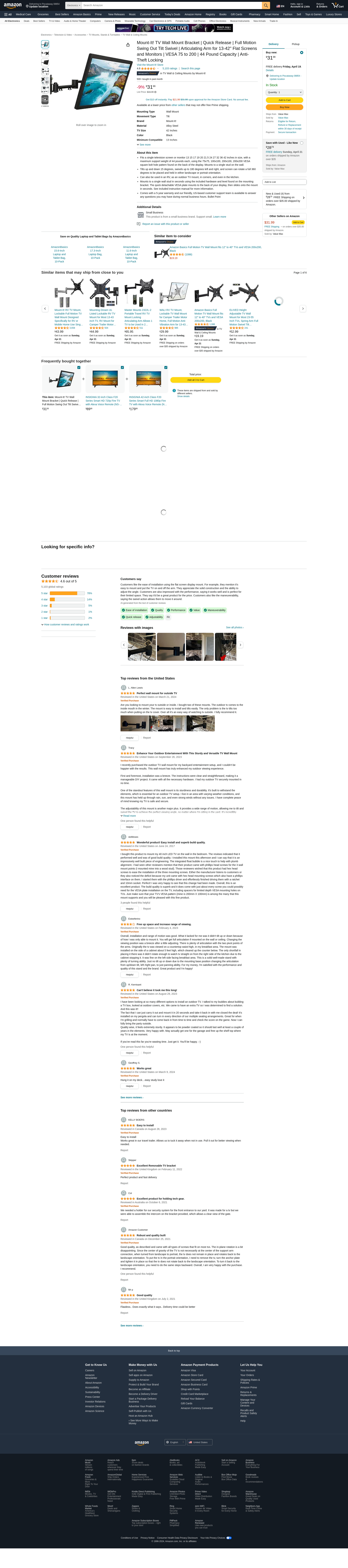 Mount-It! TV Wall Mount Bracket | Quick Release | Full Motion Swing Out Tilt Swivel | Articulating Arm for 13-42" Flat Screens and Monitors | VESA 75 to 200 | 44 Pound Capacity | Anti-Theft Locking