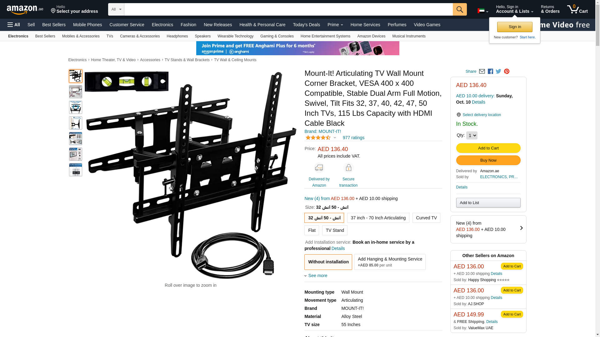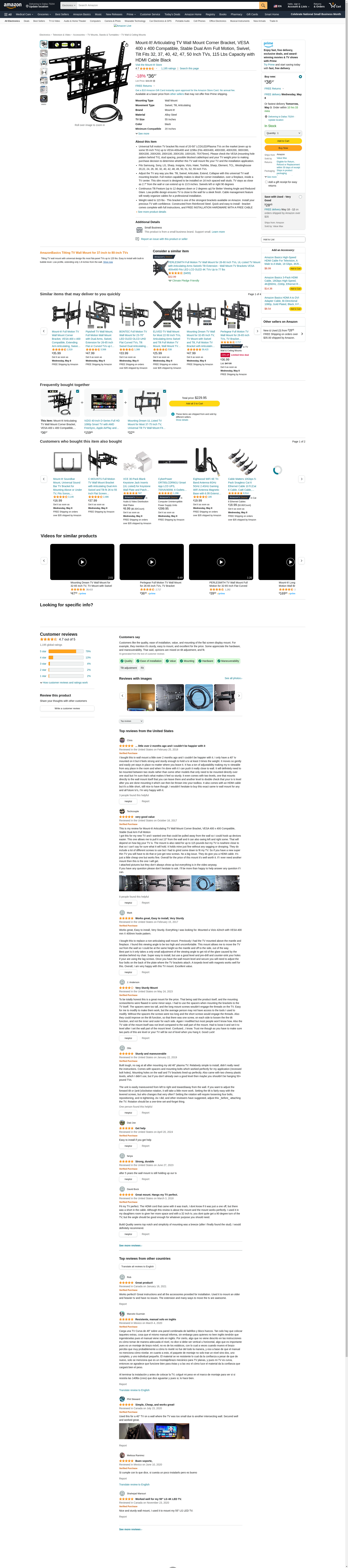 Mount-It! Articulating TV Wall Mount Corner Bracket, VESA 400 x 400 Compatible, Stable Dual Arm Full Motion, Swivel, Tilt Fits 32, 37, 40, 42, 47, 50 Inch TVs, 115 Lbs Capacity with HDMI Cable Black: Maxedbuy.com
