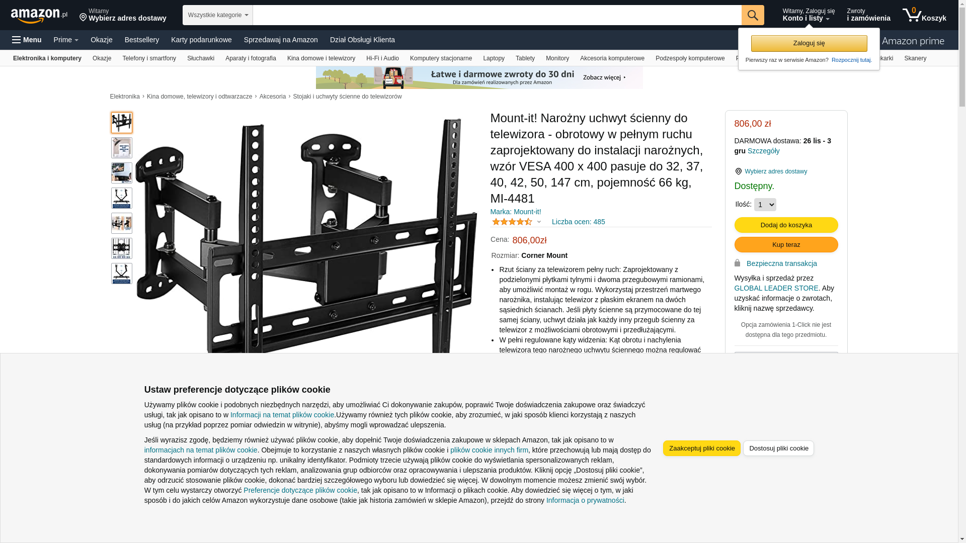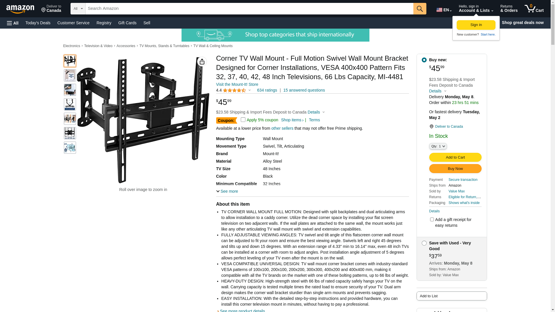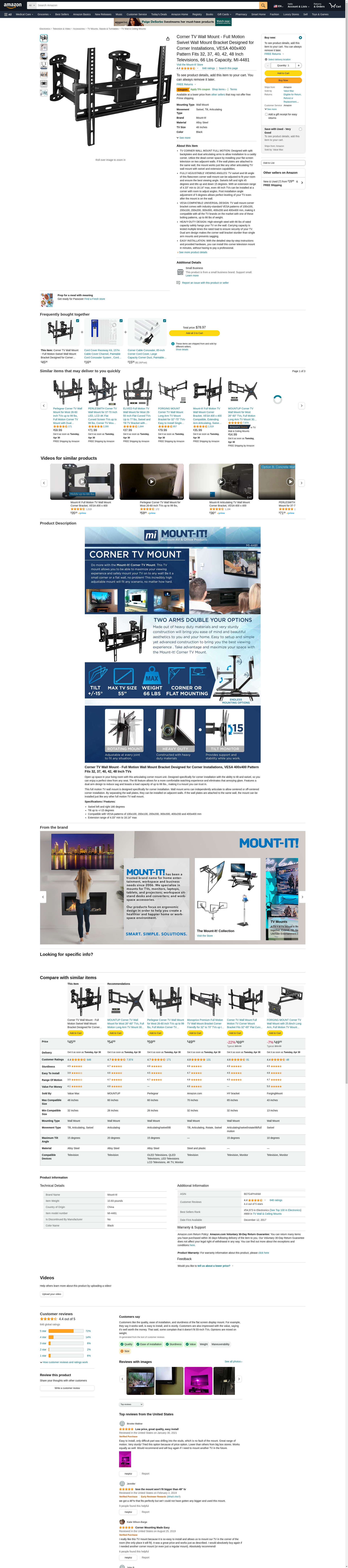 | Feature | TV CORNER WALL MOUNT FULL MOTION: Designed with split backplates and dual articulating arms to allow installation to a caddy corner. Utilize the dead corner space by installing your flat screen television on two adjacent walls. If the wall plates are attached to the same wall, the mount works just like any other articulating TV wall mount with swivel and extension capabilities. |