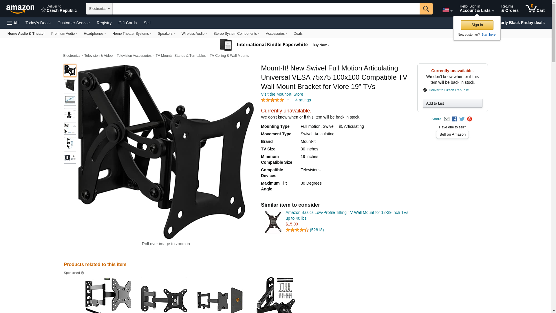 Mount-It! New Swivel Full Motion Articulating Universal VESA 75x75 100x100 Compatible TV Wall Mount Bracket for Viore 19" TVs