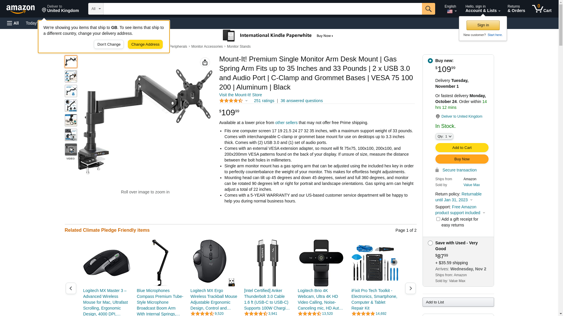 - Single arm monitor mount has a gas spring arm that can be adjusted using the included hex key in order to perfectly counterbalance the weight of your monitor. This makes for effortless height adjustments.