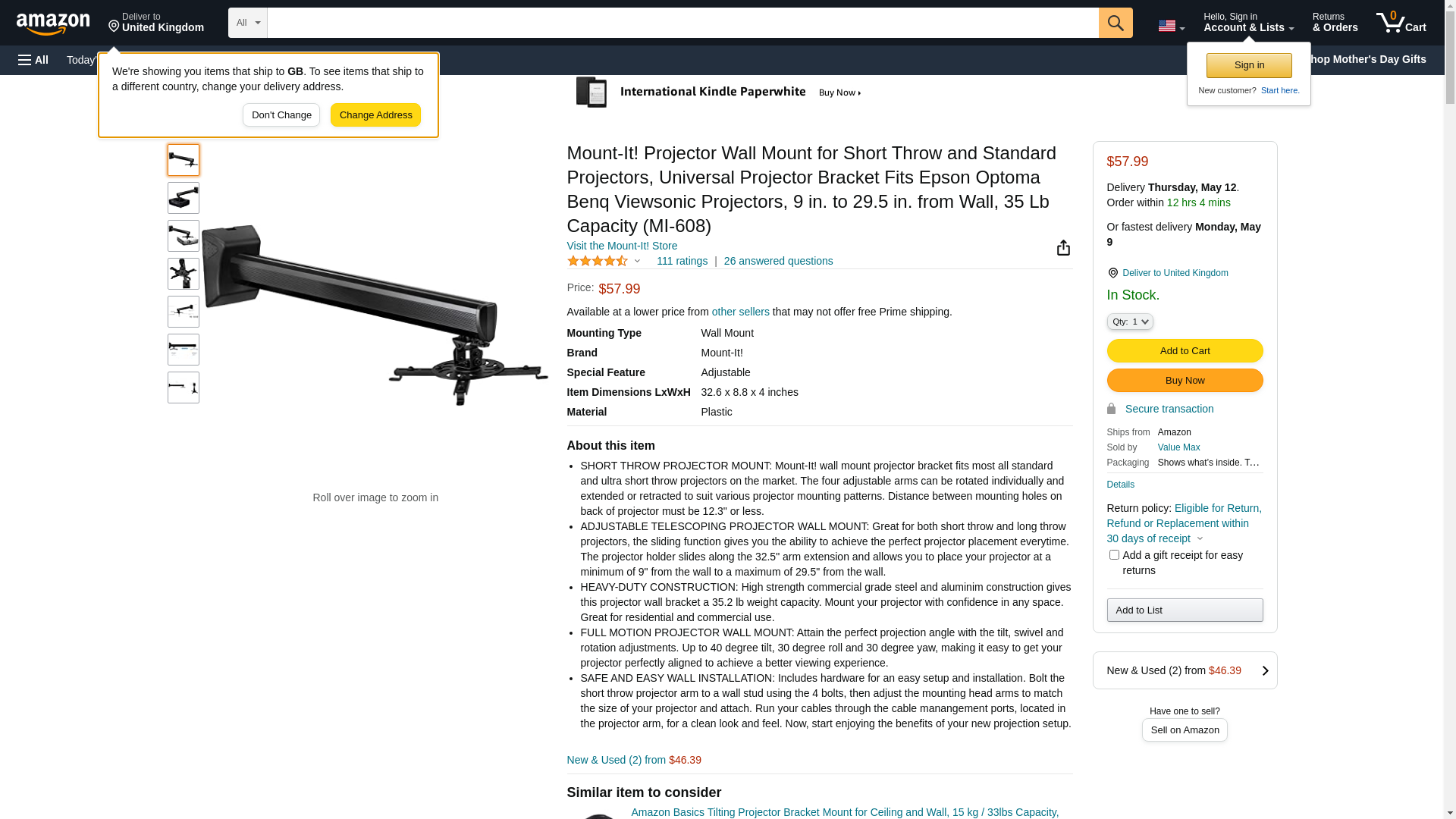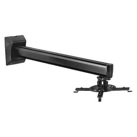 Mount-It! MI-608 is a universal projector wall mount for standard and short throw projectors, featuring a heavy-duty design and construction allowing it to hold up to 35.2 lbs. It offers multi directional positioning with four adjustable support arms that can fit a wide range of mounting holes, allowing you the versatility to mount a variety of projector brands and sizes. It is compatible with most popular Optoma, Epson, BenQ and Viewsonic projectors. This projector mount is perfect for use in classrooms, boardrooms, hotels, bars and restaurants or anywhere a projector needs to be mounted. Powder coating finish and decorative plastic cover that fits snugly over the wall mounting plate adds a nice touch for a premium look and feel. Integrated cable management keeps cables organized, protected and out of sight. Integrated full motion ball joint design offers +/- 20 degree pitch, +/- 15 degree roll and +/- 15 degrees of yaw. Internal cable management for a clutter-free appearance. Black finish with decorative plastic components provide a sleek and modern design. The mounting system comes with everything you need to assemble a complete mount. To verify projector compatibility, please ensure the projector weighs less than 35.2 lbs. Then find the maximum diagonal distance between the bolt holes. The distance should be less than 12.3 inches.