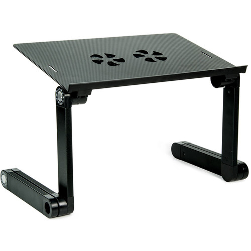 - COOLING FANS – Laptops tend to get warm when they are being used for long periods of time. Instead of just having vent holes in the tray, this laptop table stand features two cooling fans that are powered through USB ports to dissipate the warm air from under your laptop. Enjoy many hours of computer use without worrying that your laptop may overheat.