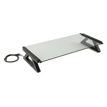 Mount-It! MI-7240 stylish black contemporary tempered glass Monitor, Laptop/Notebook stand that comes with 3 built-in 2.0 Hi-Speed USB ports with a Y-shaped USB power cord to power up your devices. This universal contemporary stand will help create some desk space and organize your workstation. With this MI-7240 durable, tempered glass shelf it will elevate your Monitor, Laptop/Notebook or other devices such as such, as a printer, fax machine, game console, cable boxes and other streaming devices to 3 3/8,” which will create 3 ¼ inches of valuable desk space. Additional space underneath the stand frees-up valuable desktop space for a laptop, a keyboard or paperwork. Creates space for paper beneath a printer, and countless other practical home and office applications. <br> <br> This well-designed stand will support a variety of products with its durable, tempered glass shelf of 22 3/8 inches by 10 inches, which is ideal for any workstation, desk or table-top in any room or office. While you are utilizing this stand for your electrical devices you can transfer data and power to other