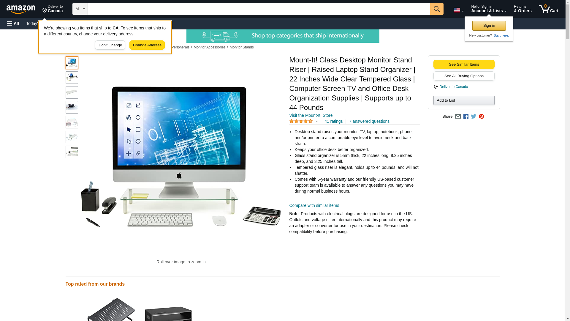 Mount-It! MI-7263 monitor stand elevates the display to a more comfortable height for optimal viewing experience and help reduce neck and eye strain. Contemporary design with premium glass and Aluminum materials used makes it a perfect fit for any room or office. Ideal for cramped workstations and desks as it expands your work area upward, maximizing your available work area. <br> <br> Its extended size of 22 inches by 8.3 inches accommodates a wide variety of computer monitors, printers and other miscellaneous office equipment and accessories. Additional space underneath the stand frees-up valuable desktop space for a laptop, a keyboard or paperwork. Creates space for paper beneath a printer, and countless other practical home and office applications. <br> <br> MI-7263 is sized large enough to fit any monitor or office equipment. It gives a boost of height you need while still having available storage space available underneath the unit. It is perfect for any room and is easy to assemble and has a neutral clear glass and reflective metal leg finish. <br> <br> The shelf is stabilized four legs with a nominal height of 2.75". The legs have anti-slip silicone pads to offer additional stability to safely hold your monitor. <br> <br>