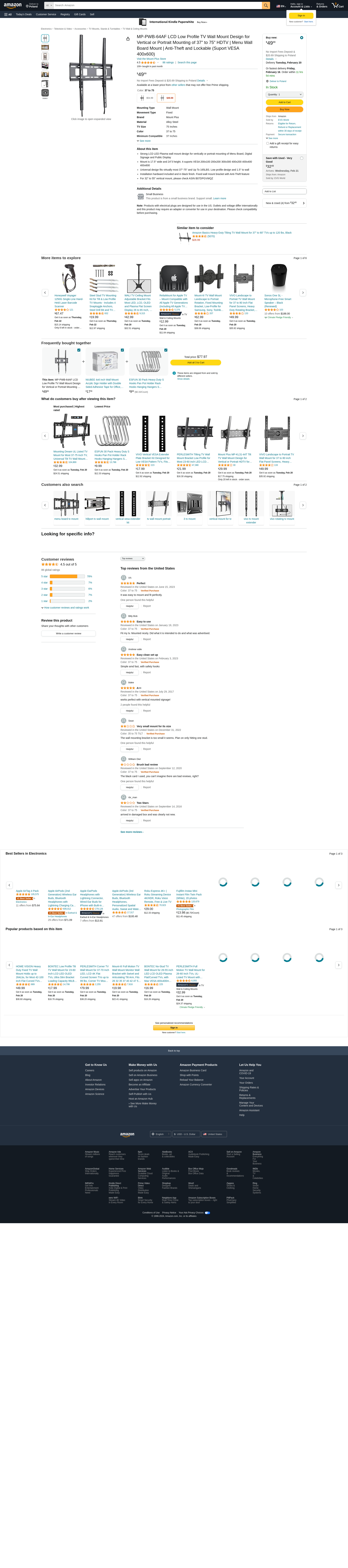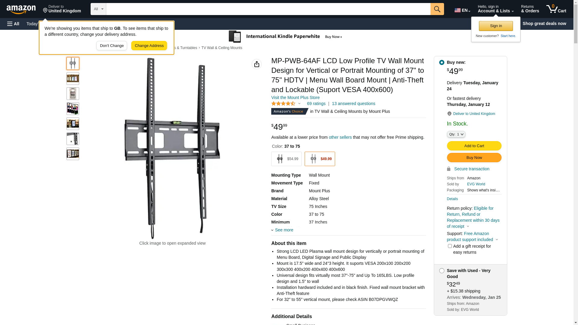 - Universal design fits virtually most 37"-75" and Up To 165LBS. Low profile design and 1.5" to wall