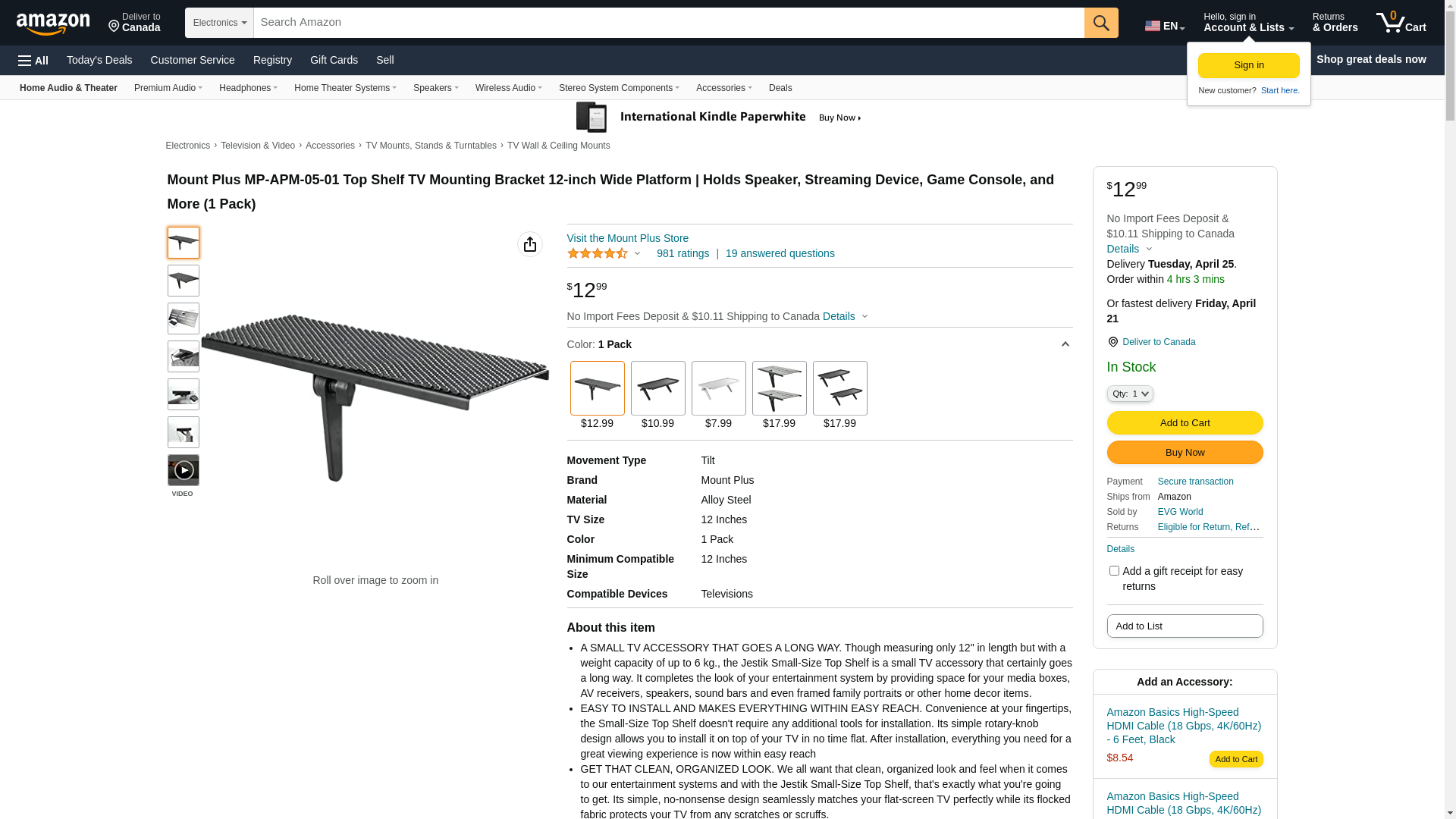 Mount Plus MP-APM-05-01 Top Shelf TV Mounting Bracket 12-inch Wide Platform | Holds Speaker, Streaming Device, Game Console, and More (1 Pack): Maxedbuy.com
