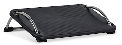 Mount-It! Ergonomic Footrest Adjustable Angle and Height Office Foot Rest Stool For Under Desk Support, 18 x 14 In, 3-Level Height Adjustment, Black Improve your desk comfort with Mount-It! ergonomic foot rest. Keep your feet and legs lightly elevated off the floor for better posture and less strain. Designed for use under a desk or table, the low-profile unit takes up minimal space, but provides substantial benefits. There are three adjustable tilt settings to ensure a great fit for your leg length. Tilt setting goes from 0 to 15 degrees. The large, non-skid surface prevents your feet from slipping off the foot rest while you're comfortably sitting at your desk during the workday. The foot rest comes with a textured round surface bumps for enhanced stress reduction during the work day. The uneven surface creates a massaging effect on the soles of feet. Simply move feet in any direction over the bumpy surface. Non-skid texture provides great grip, increasing feel, stability and control while your feet are resting on the oversized platform of 17 by 11 inches.