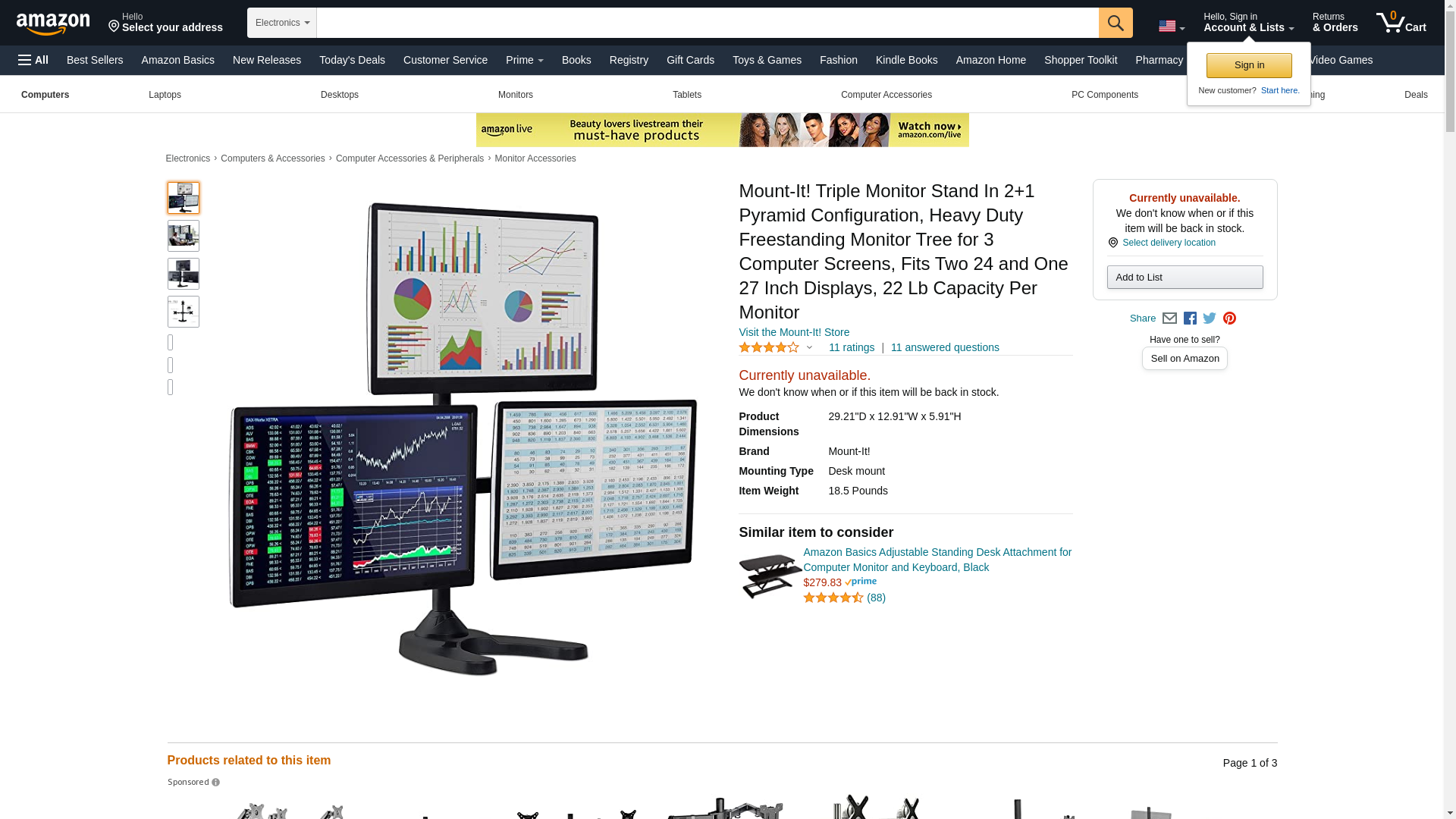 Mount-It! Triple Freestanding Monitor Stand for Widescreen Monitors Up to 24"
