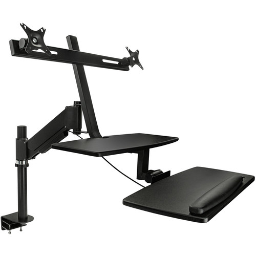 Mount-It! Sit Stand Desk, Standing Desk, Height-Adjustable Sit to Stand Workstation, Monitor, Laptop, and Keyboard Mount, Fits 22, 23, 24, 27 Inch Dual Monitors, C Clamp, Black (Dual Monitor)