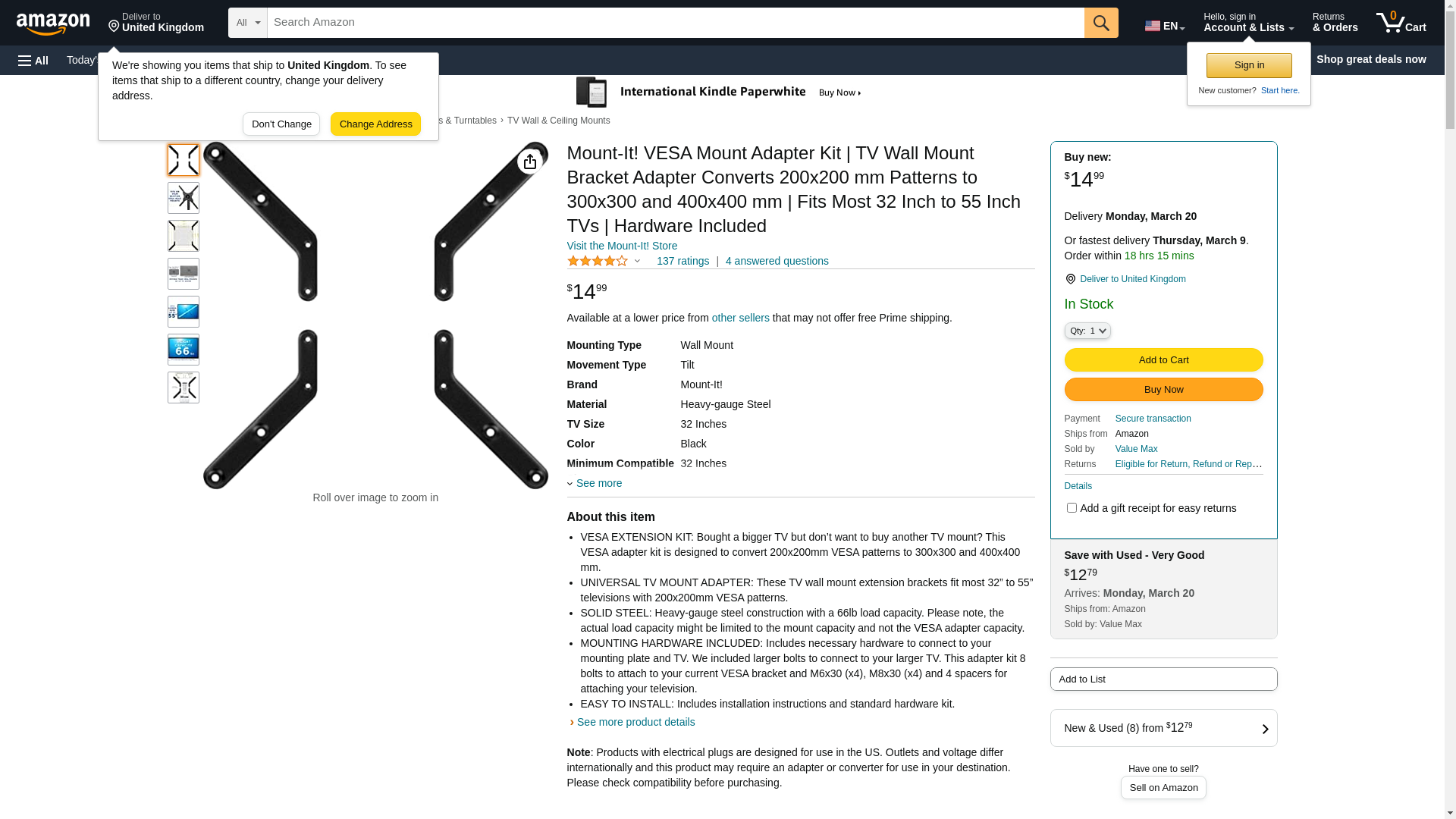 - SOLID STEEL: Heavy-gauge steel construction with a 66lb load capacity. Please note, the actual load capacity might be limited to the mount capacity and not the VESA adapter capacity.