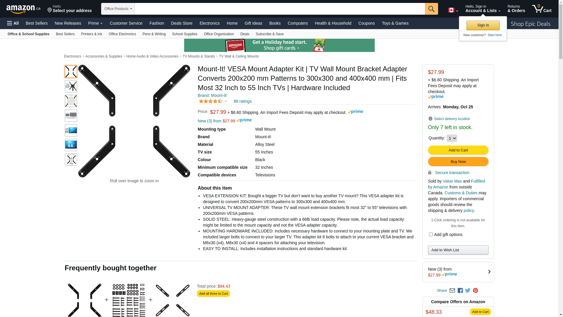 Mount-It! Mount Adapter Kit for TV Mount, 66 lbs. Max. (MI-791) | Quill.com