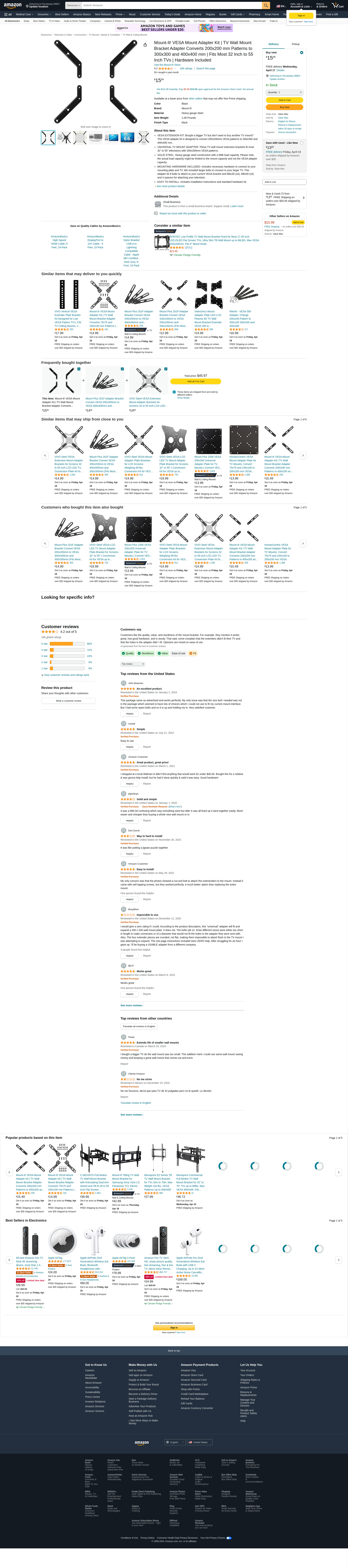 - VESA EXTENSION KIT: Bought a bigger TV but don’t want to buy another TV mount? This VESA adapter kit is designed to convert 200x200mm VESA patterns to 300x300 and 400x400 mm.