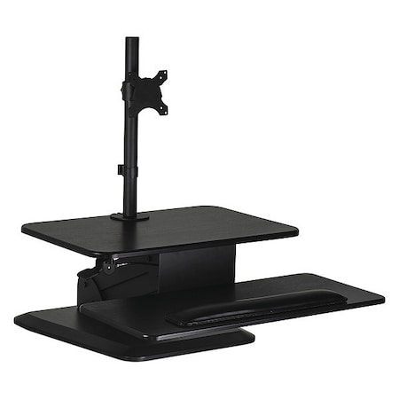 Monitor and Desk Mount specialist Mount-It! will change the way you work! This sit-stand desk converter sits on top of your existing desk and allows you to work comfortably from either a sitting or standing position. MI-7913 provides you an easy, quick and affordable way to switch positions from sit to stand. Preventing you from sitting too long while working and allowing you to work under a most ergonomic standing position. Spring-assisted lift mechanism allows you to raise and lower it almost effortlessly in just seconds. MI-7913 gives you all the sturdiness and flexibility of Mount-It! products in a compact footprint. The desktop platform and keyboard tray are sized adequately to support laptops, keyboard and mouse side by side. The soft cushioning pad provides ergonomic comfort. We included a single monitor mount to allow users to further raise the height of their monitors and to provide more desktop space. The monitor mount is also height adjustable to allow full customization of the platform and monitor height to your needs. Large freestanding base requires no modification to your existing desk and provides stable support. Product Features Perfect for laptops, notebooks, and tablets Fits most desks in any office or cube Ergonomic design that adjusts to most user's height Spring-assisted lift mechanism Switches from sitting to standing position in seconds Built-in keyboard tray Holds up to 33 lbs. of weight Easy set-up Product Specifications Dimensions (Weighted Base): 19.5" x 19. 5" Dimensions (Desktop): 23.5" x 15.75" Dimensions (Keyboard Tray):26.75" x 11.75" Extension Height: 6.5" to 18” from desktop.