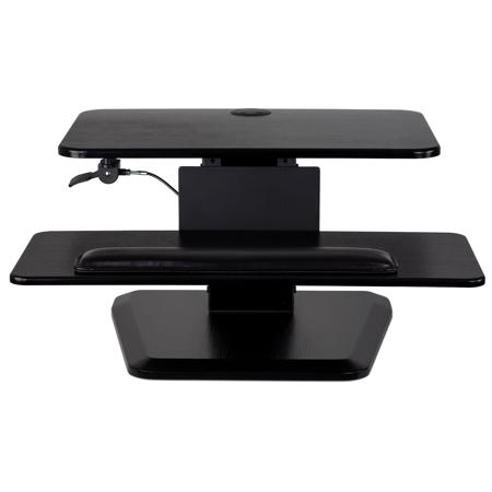 Monitor and Desk Mount specialist Mount-It! will change the way you work! This sit-stand desk converter sits on top of your existing desk and allows you to work comfortably from either a sitting or standing position. <br> <br> MI-7916 provides you an easy, quick and affordable way to switch positions from sit to stand. Preventing you from sitting too long while working and allowing you to work under a most ergonomic standing position. <br> <br> Spring-assisted lift mechanism allows you to raise and lower it almost effortlessly in just seconds. MI-7916 gives you all the sturdiness and flexibility of Mount-It! products in a compact footprint. <br> <br> The desktop platform and keyboard tray are sized adequately to support laptops, keyboard and mouse side by side. The soft cushioning pad provides ergonomic comfort. <br><br>Large freestanding base requires no modification to your existing desk and provides stable support. <b>Product Features</b> <br> <br> Perfect for laptops, notebooks, and tablets <br> Fits most desks in any office or cube <br> Ergonomic design that adjusts to most user's height <br> Spring-assisted lift mechanism <br> Switches from sitting to standing position in seconds <br> Built-in keyboard tray <br> Holds up to 33 lbs. of weight <br> Easy set-up <br> <b>Product Specifications</b> <br> <br>Dimensions (Weighted Base): 19.5" x 19. 5"<br> Dimensions (Desktop): 23.5" x 15.75"<br> Dimensions (Keyboard Tray):26.75" x 11.75" <br> Extension Height: 6.5" to 18” from desktop.