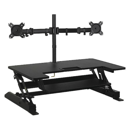 Mount-It! Standing Desk Converter with Bonus Dual Monitor Mount Included - Height Adjustable Stand Up Desk - Wide 36 Inch Sit Stand Workstation with Gas Spring Lift– Black (MI-7934)