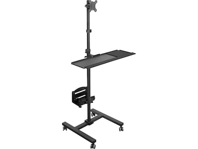 Work on-the-go with ease using our mobile computer cart - perfect for mounting your monitor, keyboard, and CPU on a rolling stand. <br><br> Enjoy optimal viewing with our height-adjustable VESA bracket that supports up to 32" monitors and tilts +/- 15 degrees, swivels, and rotates 360 degrees. <br><br>Type comfortably with our full-sized keyboard tray that can be easily adjusted to an ergonomic position with a simple twist knob. <br><br>Keep your CPU secure with our floating CPU holder that is height and width adjustable and features buckle straps. <br><br>Built to last with a heavy-duty steel frame and stable 19.5" W x 19.6" D base with 4 durable caster wheels, making it easy to roll it where you need it.<br><br>Mobilize your workstation with the Mount-It! Rolling Computer Cart/Workstation, and increase productivity. Easy to assemble, this mobile cart is perfect if you need to quickly change offices, medical stations, locations in a warehouse, classrooms, trade shows booths, and more! The heavy duty, all-steel frame has a wide base with durable caster wheels that can be locked into place for a stationary position. Total Cart Height: 70” Monitor Bracket Height: 37” To 69” Keyboard Tray Height: 35” To 66.5” Keyboard Tray Dimensions: 25.7” W X 9.6” D CPU Holder Dimensions: 4.8” W (Min) X 8.3” W (Max); Straps Fit Up To 9.3” H Locking Caster Wheels: Yes Cable Management: Yes