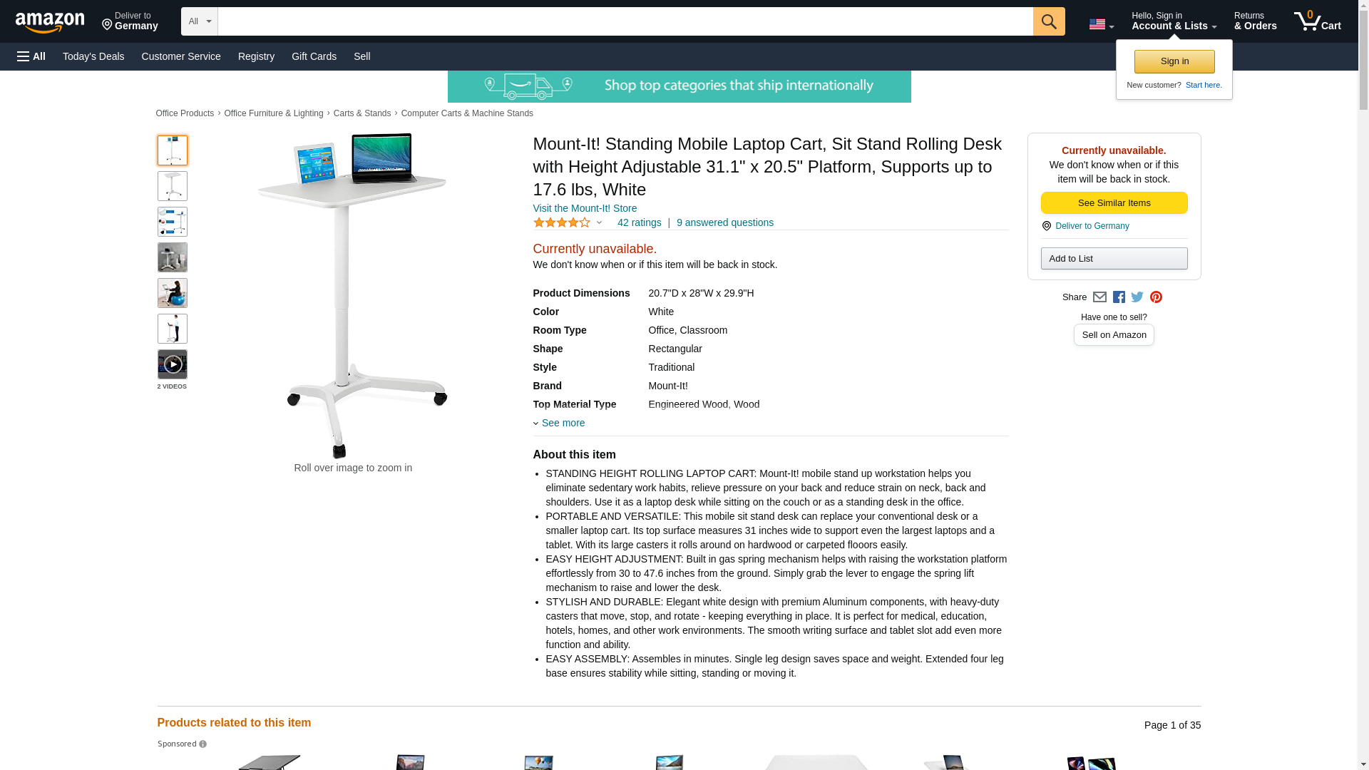 Mount-It! Standing Mobile Laptop Cart, Sit Stand Mobile Desk with Height Adjustable 31.1" x 20.5" Platform, Supports up to 17.6 lbs, White Mount-It Standing Mobile Laptop Cart stand up workstation helps you practice good posture and ergonomics while relieving pressure on your back to reduce unnecessary strain on neck, back and shoulders. The low base allows you to use it as a laptop desk while sitting on the couch or bed. Height adjustments allow you to use this versatile mobile cart as a standing desk in the office, classroom, or many other work environments. By simply grabbing the lever to engage the gas spring mechanism you can raise the workstation platform smoothly from 29.9 to 44.1 inches from the ground. This portable, mobile sit stand desk can replace your traditional desk or a smaller laptop cart. Its top surface measures 28 inches wide by 19.7 inches deep to support almost any laptop with enough space left to also hold a tablet. This mobile desk can hold up to 17.6 lbs. With its large caster wheels, it rolls around on most any surface effortlessly. Heavy-duty locking casters that move, stop, and rotate - keeping everything in place. This adjustable mobile cart has a smooth writing surface and tablet slot, complete with 3 cable holes, to add even more functionality. Easily assembles in just minutes. Light weight single post design saves space, while the extended four leg base ensures stability while sitting, standing or moving. Specifications: Material: Plastic, MDF & PVC, Steel, Aluminum Dimensions: 28 x 21.1 x 29.9 - 44.1 inches Worksurface Size (LxW): 28 x 19.7 inches Tabletop Thickness: 0.98 inches Height Range: 29.9 - 44.1 inches Worksurface Weight Capacity: 17.6 Lbs