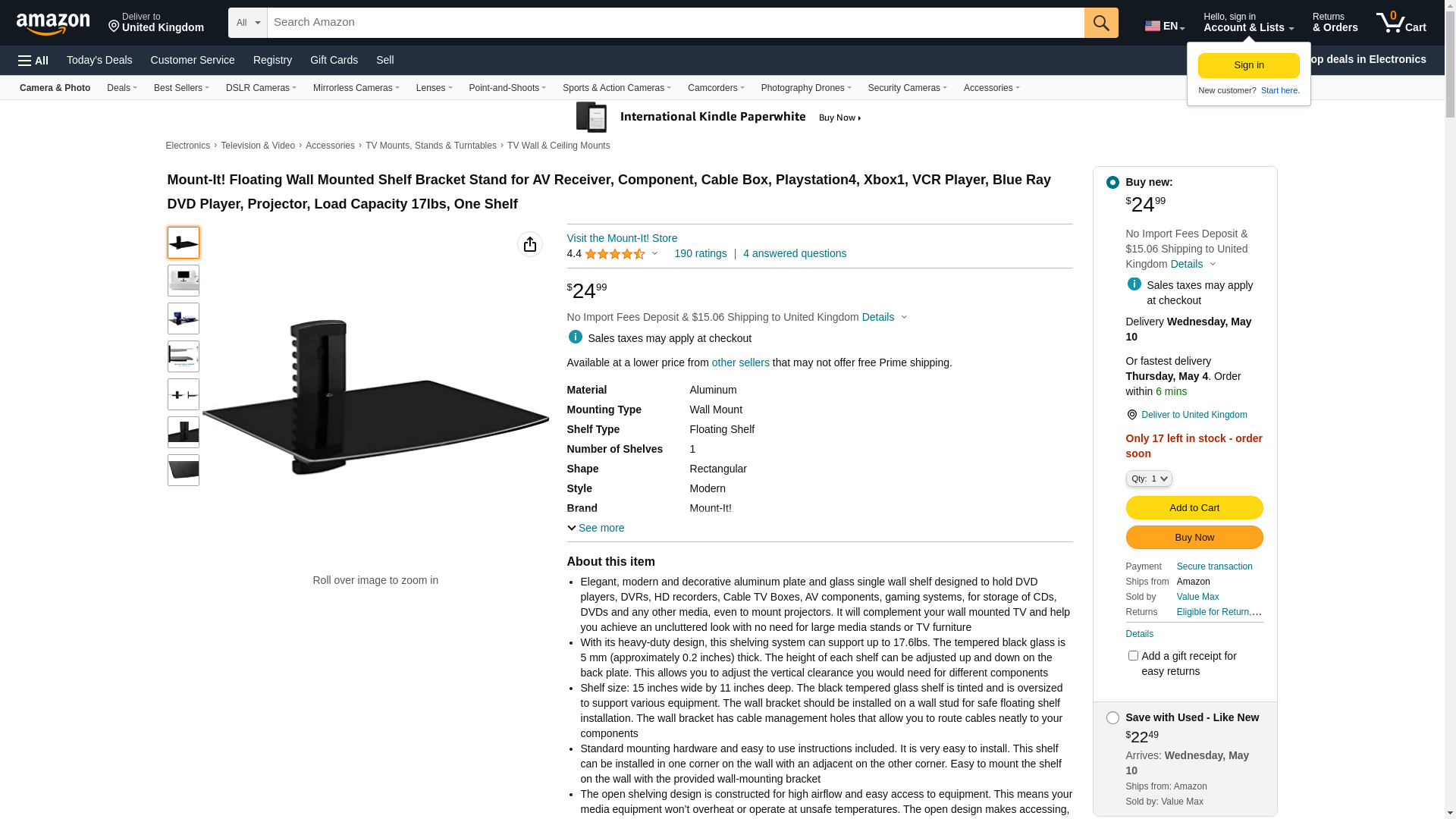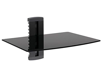 Mount-It! floating wall mounted shelf allows you to get rid of your floor standing TV furniture and complement the look of your wall mounted flat screen television. The shelf design allows you to place DVD players, cable boxes and other AV components on the wall. <br> <br> <br> The shelving system is very durable and can carry up to 17.6 pounds of total weight. Made from sturdy extruded Aluminum and tempered glass. Its large surface area can easily hold gaming systems and BluRay DVD players. <br> <br> The installation is very easy. Simply locate the wall stud and use the provided hardware to hang the wall mounting plate on the wall. Once the wall plate is installed, place the tempered glass shelf on the wall bracket channels. Cable management holes hide the unsightly cables. <br> <br> <b>Features and Specifications:</b> <br> <br> Dimensions: 15 inch Wide, 11 inch Deep, 8.75 inches High. <br> Fits most DVD players, cable boxes, AV receivers and gaming consoles. <br> 5 mm thick black tempered glass. <br> Powder coated Aluminum Wall Plate for modern look and scratch resistance. <br> Cable Management System. <br> 17.6 lbs carrying capacity. <br> <br> Warning: The installer of these products must verify that the mounting surface or wall, will safely support the combined weight of all attached equipment and hardware. <br> <br> Mount-It! experience and guarantee. Mount-It! is the expert in television wall mounts and home theater accessories. We apply our decade long experience in this field to offer the best features at value prices. Contact our friendly customer support team for any questions or issues.