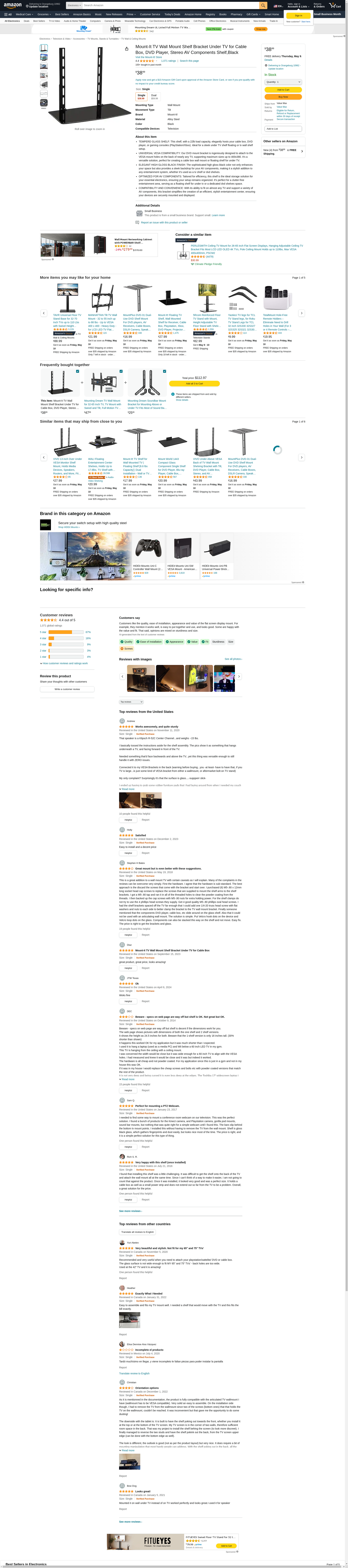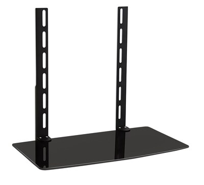 Mount-It! LCD, LED, Plasma TV Wall Mount Bracket for Cable Box, DVD Player, Stereo Components Shelf (1 Shelf) Mount-It! AV component shelving bracket is designed to store AV components above or under a wall mounted TV. The vertical brackets are installed between the TV and the TV wall mount and connect to the bolt holes behind the TV. The bracket can also be used above the TV for TVs that are kept on a TV stand. Ideal for storing cable boxes, soundbars, center channel speakers, receivers, DVD players, streaming devices and gaming consoles. High-strength steel and tempered glass offer 22 lbs of storage capacity. Sleek black gloss finish will complement your devices and decor.