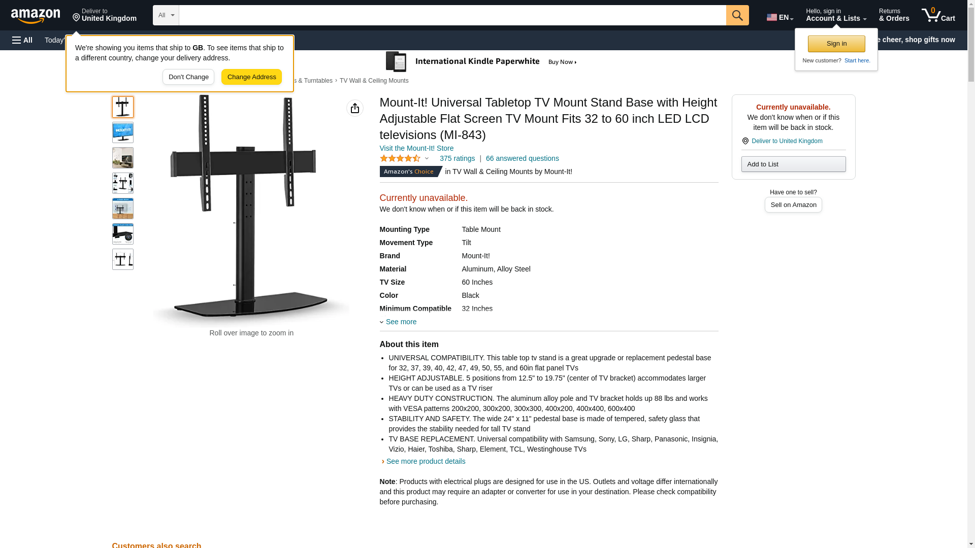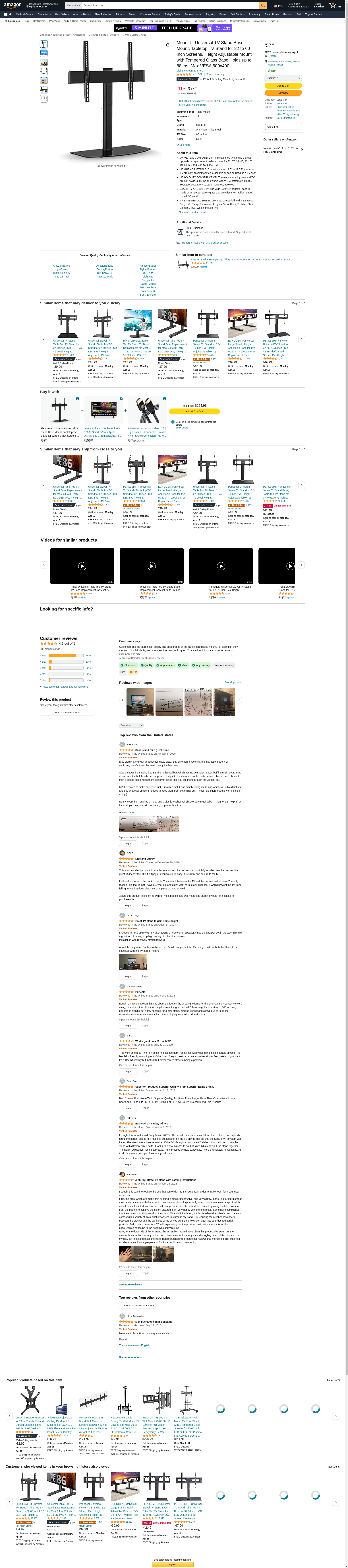 | Feature | UNIVERSAL COMPATIBILITY. This table top tv stand is a great upgrade or replacement pedestal base for 32, 37, 39, 40, 42, 47, 49, 50, 55, and 60in flat panel TVs |