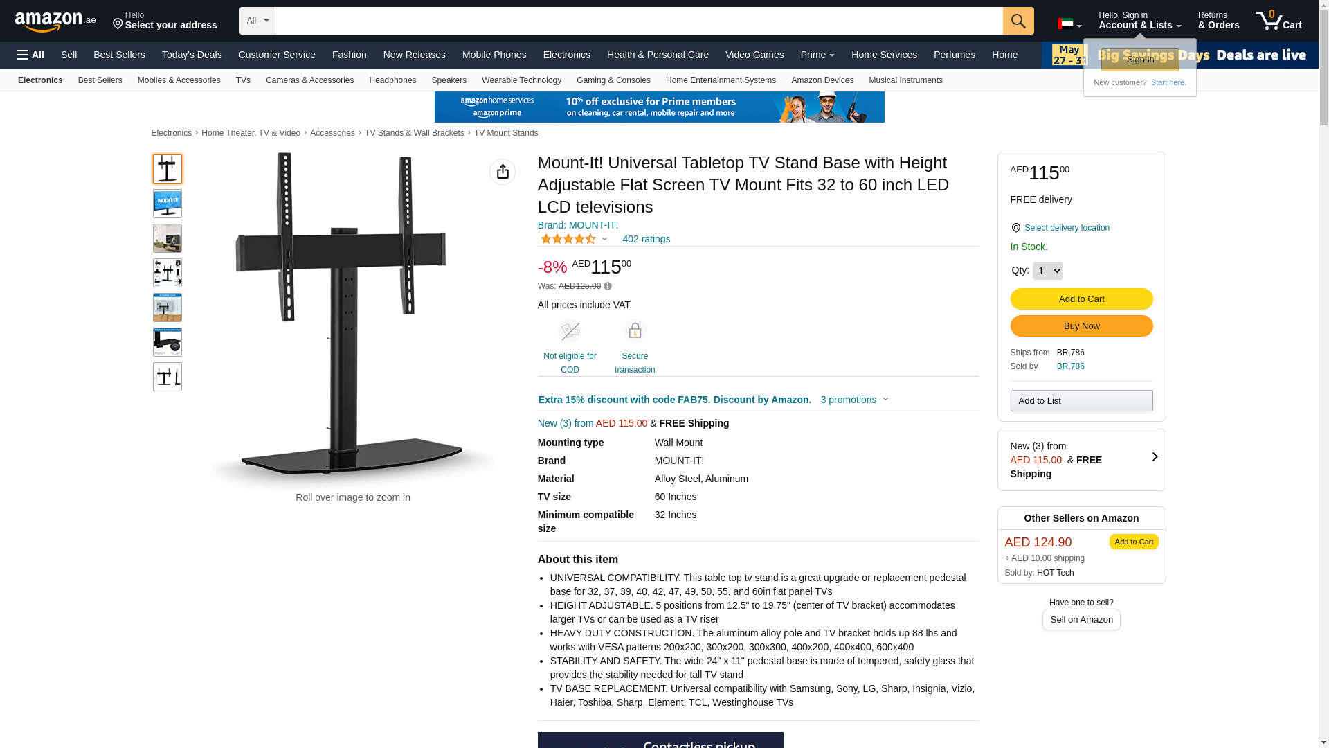 Mount-It! MI-843 contemporary TV mount and media component stand combo features three beautiful black silk tempered glass shelves with spacious shelving for all of your surround sound system components, Blu-ray player, game consoles, cable box and place other media components. The built-in TV mount is VESA compatible and fits TVs up to 60 inches in screen size. <br><br> Wall mounted TVs look great but offer no storage for audio-video components, whereas classic entertainment centers do not allow the TVs to be installed high up over the shelves. MI-843 offers best of these two options by providing expansive shelf space and elevating your TV with its built-in TV mounting bracket. <br><br> It is made from high-strength steel columns and tempered 8 mm thick glass shelves and has a carrying capacity of 88 lbs.<br><br> <br>Specifications:</b><br> * Material: Glass, Steel <br> * Color: Black <br> * Shelf dimensions: 24 inches wide, 11 inches deep <br> * TV Mount: Compatible with following VESA patterns - VESA 600x400, 600x200, 400x400, 400x300, 400x200, 300x300, 200X200, 200X100, 100x100 mm <br> * TV Compatibility Check: Bolt holes behind the TV should be less than 23.6 inches wide and 15.7 inches high. <br> * Carrying Capacity: 88 lbs <br> * Shelves: 1<br> * Glass Finish: Black Silk Screen <br> * Glass Thickness: 8 mm <br>