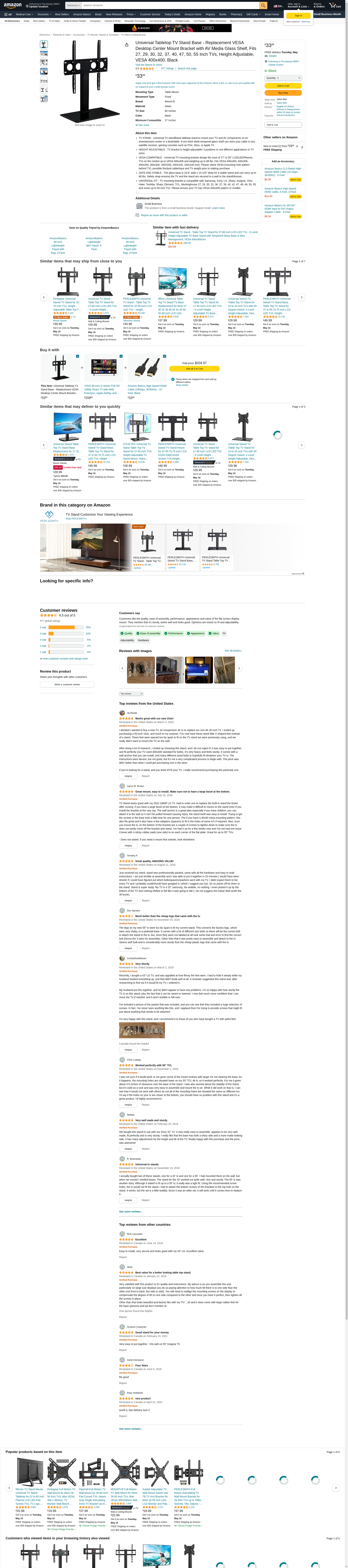| Feature | TV STAND - Universal TV stand/base tabletop stand to mount your TV and AV components on an entertainment center or a desk/table. 8 mm thick sleek tempered glass shelf can store your cable tv box, satellite receiver, gaming consoles such as PS4, Xbox, or Apple TV |