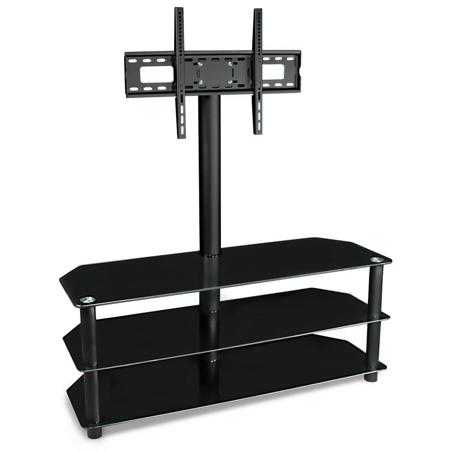 Mount-It! MI-863 contemporary TV mount and media component stand combo features three beautiful black silk tempered glass shelves with spacious shelving for all of your surround sound system components, Blu-ray player, game consoles, cable box and place other media components. The built-in TV mount is VESA compatible and fits TVs up to 60 inches in screen size. <br> <br> Wall mounted TVs look great but offer no storage for audio-video components, whereas classic entertainment centers do not allow the TVs to be installed high up over the shelves. MI-863 offers best of these two options by providing expansive shelf space and elevating your TV with its built-in TV mounting bracket. <br> <br> It is made from high-strength steel columns and tempered 8 mm thick glass shelves (5 mm on lower two shelves) and has a carrying capacity of 88 lbs. The column in the middle comes with cable management system to hide and organize wires between the TV and A/V components. <br> <br> <b>Specifications:</b> <br> <br> * Material: Glass, Steel <br> * Color: Black <br> * Shelf dimensions: 47.2 inches wide, 15.75 inches deep, 8 and 9 inches clearance between shelves. <br> * TV Mount: Compatible with following VESA patterns - VESA 600x400, 600x200, 400x400, 400x300, 400x200, 300x300, 200X200, 200X100, 100x100, 75x75 mm <br> * TV Compatibility Check: Bolt holes behind the TV should be less than 23.6 inches wide and 15.7 inches high. <br> * Carrying Capacity: 88 lbs <br> * Shelves: 3 <br> * Glass Finish: Black Silk Screen <br> * Glass Thickness (Top-Bottom): 8/5/5 mm <br> * Cable Management: Yes <br>